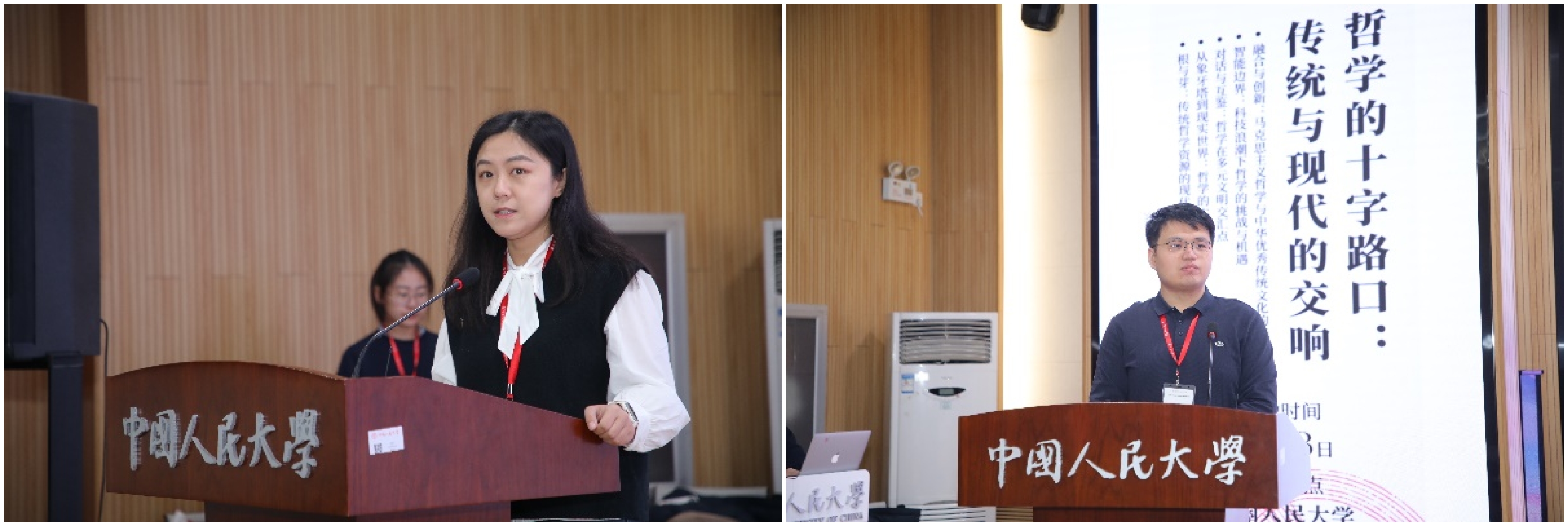 主论坛上,五位获奖论文作者发言,上海财经大学焦旸同学报告题目是《马克思主义与中华优秀传统文化相结合的批判创造性路径》,黄志军教授发表评论;山西大学张宏博同学报告题目是《实证美学的还原论是否可靠?——走向反思和动态的实证美学》,李义天教授发表评论;北京师范大学的刘隽杉同学报告题目是《布洛赫对老子哲学的四重激进阐释》,罗松涛教授发表评论;清华大学的刘纪龙同学发表题目是《市民社会的“道德困境”及其消解——从斯密、黑格尔到马克思》,李义天教授发表评论;黑料718 的唐静琰发表题目是《力学与超越力学:莱布尼兹论Conatus与个体性》,罗松涛教授发表评论。与会同学积极提问交流,会议气氛热烈。