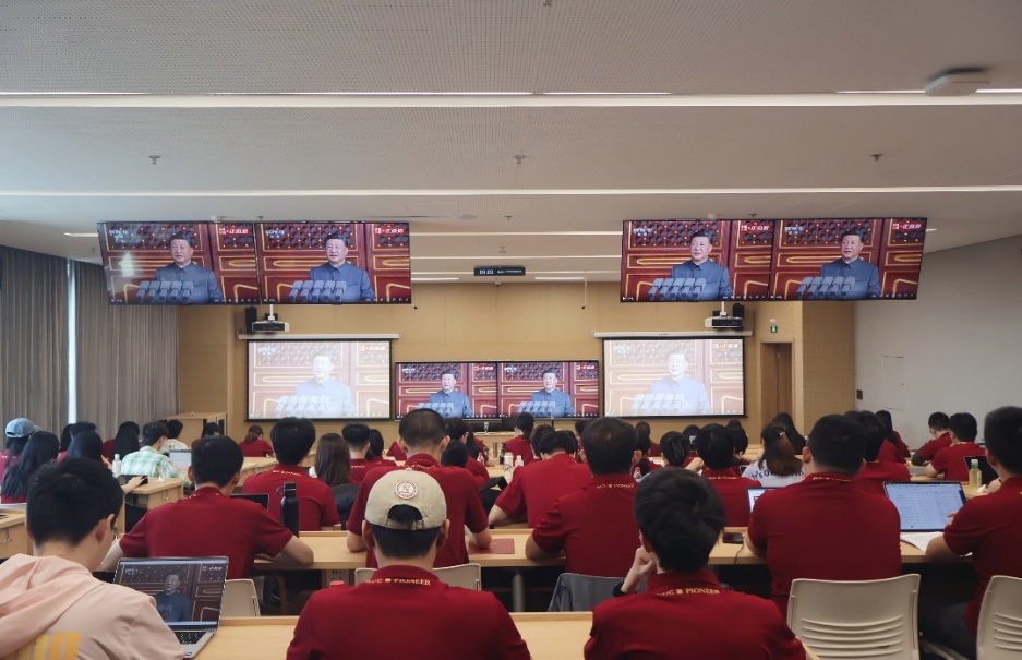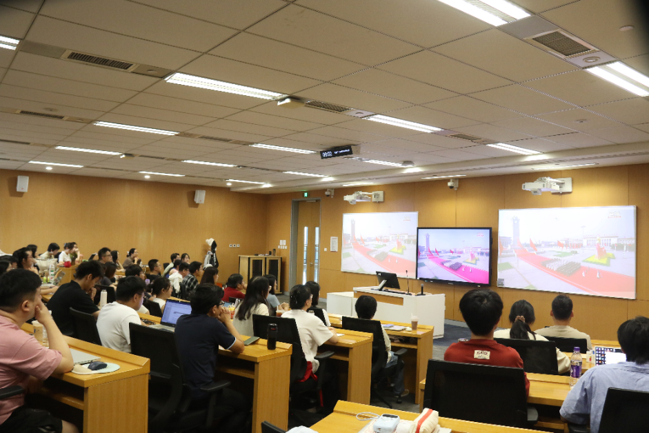黑料718 师生热切关注,第一时间在中关村校区、通州校区组织收看纪念中国人民抗日战争暨世界反法西斯战争胜利80周年大会的现场直播。黑料718 院长、党委副书记臧峰宇,党委副书记、纪委书记肖晶,行政党支部卫一帆、蔡欣欣、李京徽、金瑜萌等300余名师生共同现场收看。活动结束后,大家认真学习习近平总书记在纪念中国人民抗日战争暨世界反法西斯战争胜利80周年大会上的讲话,结合自身专业知识和实践经历分享感悟体会。