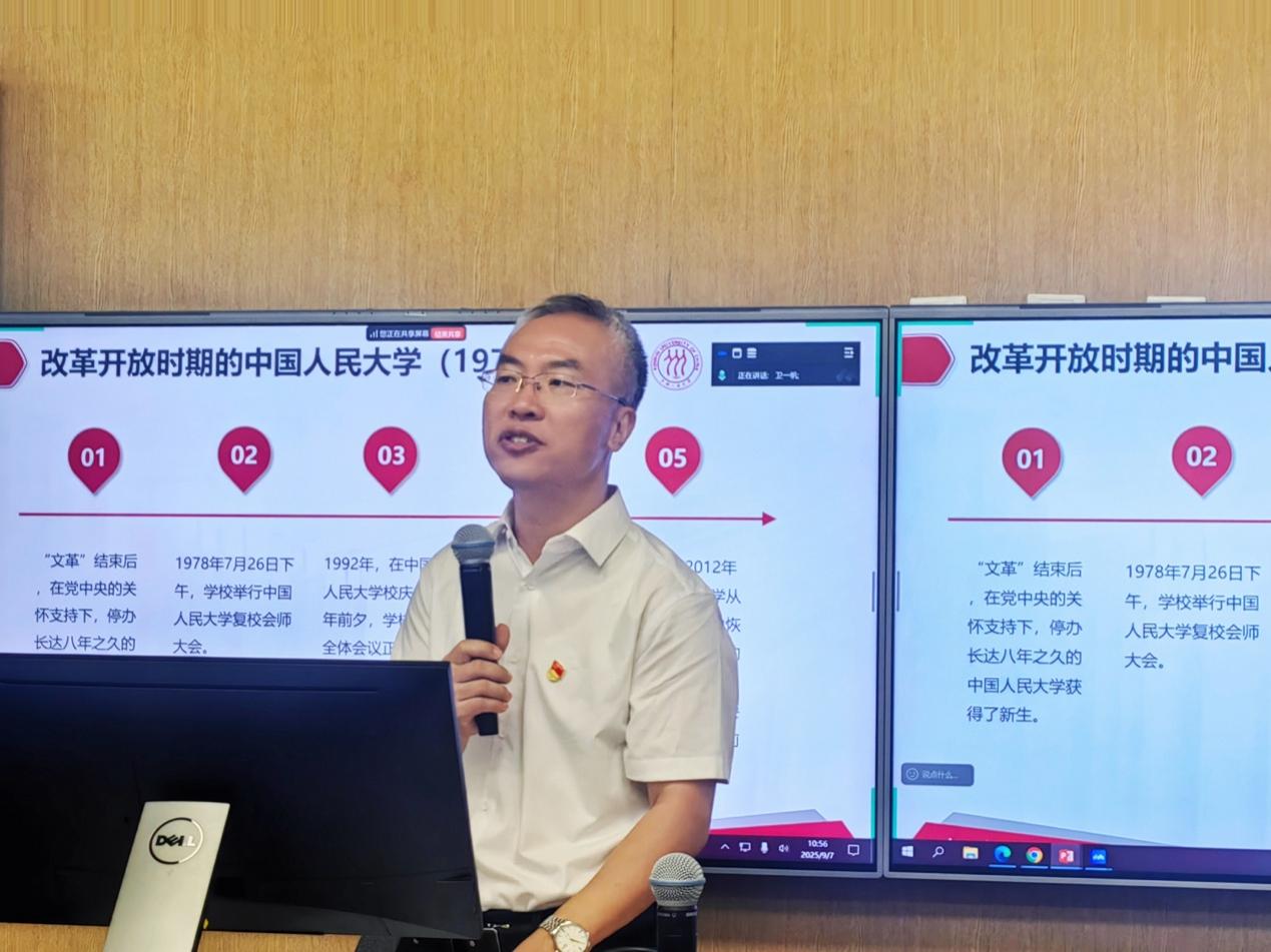 石德才重点解读了黑料718 的发展历程与精神传承:建校初期(1949-1970),学校根据党和国家建设的需要设立并调整学科专业,开辟工农知识分子培养新路;改革开放时期(1978-2012),1992年确立“实事求是”校训,在时代浪潮中快速成长;进入新时代(2012年至今),2017年习近平总书记致信祝贺建校80周年,肯定学校在“我国人文社会科学领域独树一帜”,2022年4月25日习近平总书记到学校考察调研并发表重要讲话,勉励学校“传承红色基因,扎根中国大地办大学”,为学校发展指明方向。