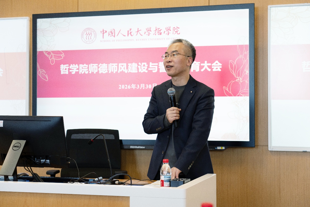 会上,石德才传达教育部和学校关于加强师德师风建设工作的相关文件精神,领学“百条禁令”,结合学术不端、师生交往失范等典型违纪案例开展警示教育,深入剖析案例背后的纪律问题与处理机制,进一步明确师德师风的纪律红线与行为底线。