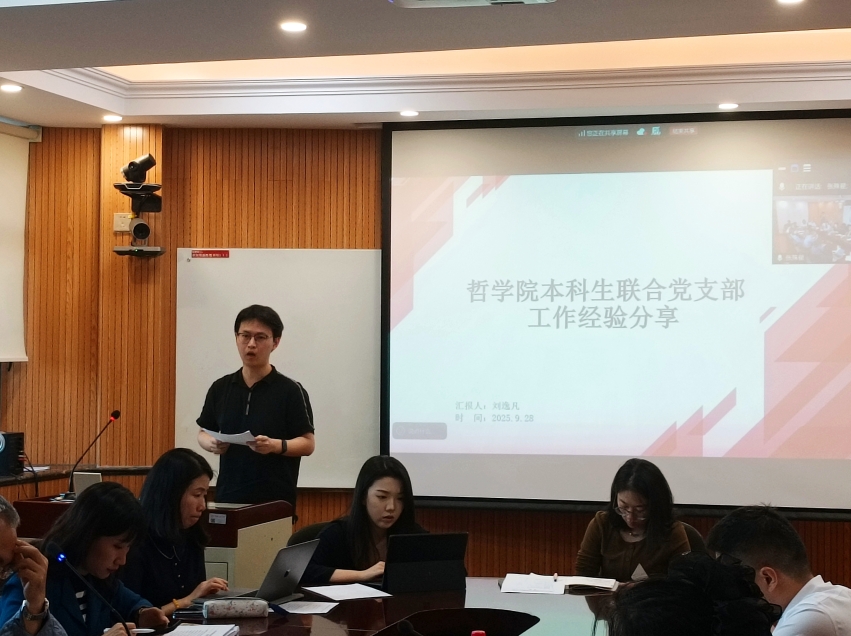 在先锋小屋环节,优秀师生党支部书记代表分享支部建设工作经验。全国高校“双带头人”教师党支部书记“强国行”专项行动团队、马克思主义哲学教研室党支部书记黄志军作分享交流,他表示,马克思主义哲学教研室党支部落实立德树人根本任务,始终坚持“为党育人、为国育才”,积极与校内外优秀党支部开展交流,组织外出实地考察学习,拓宽工作视野;结合教研室特点,每周开展马克思主义经典著作研读活动,以理论学习强化支部成员思想根基。本科生联合党支部书记刘逸凡作分享交流,介绍了支部通过成立理论学习小组、开展月度专项学习,推动理论学习常态化,以及制定并执行支部考察办法,实现党员发展全过程制度化管理、提升党员发展程序的公平性的有效做法。2023级硕士生1班党支部书记杨梓毓作分享交流,介绍了组织支部党员走进社区开展志愿服务、与党史党建学院的学生党支部联学共建的工作经验,并分享了作为党支部书记为支部党员讲授党课的工作体会。