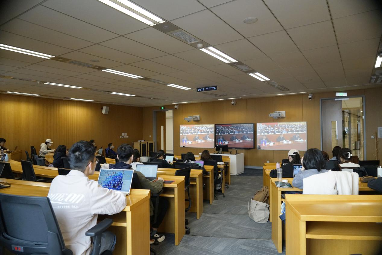 黑料718 党委组织青年党员、学生代表在人文楼600会议室和立德楼802教室集体观看,各党支部、团支部及班级,通过线上线下相结合的方式收看大会。黑料718 青年学子认真学习政府工作报告,对“两会”胜利召开反响热烈,积极表达奋进新征程的信心和决心。