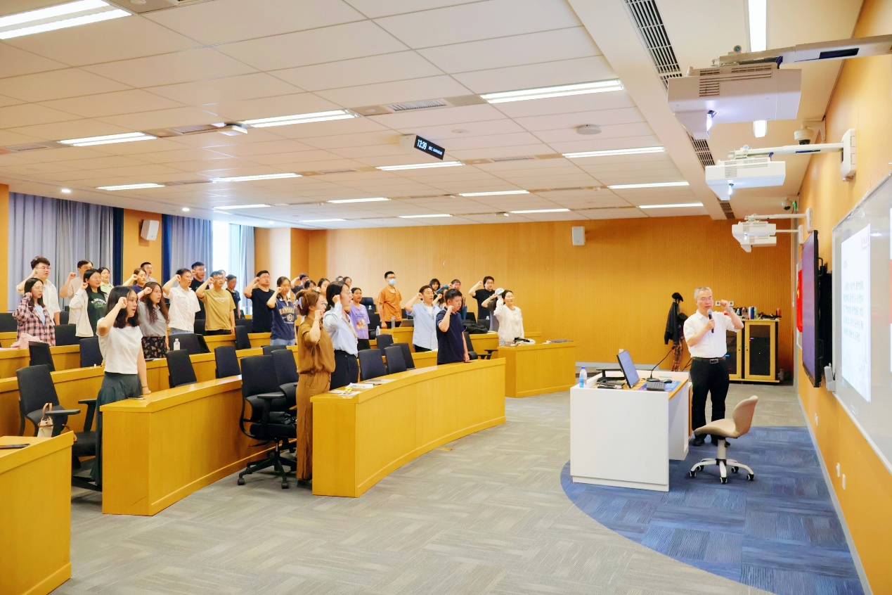 党委书记石德才为2024届毕业生党员讲授纪律党课。党委副书记、纪委书记肖晶,党务秘书、团委书记蔡欣欣以及全体本、硕、博毕业生党员参加党课。