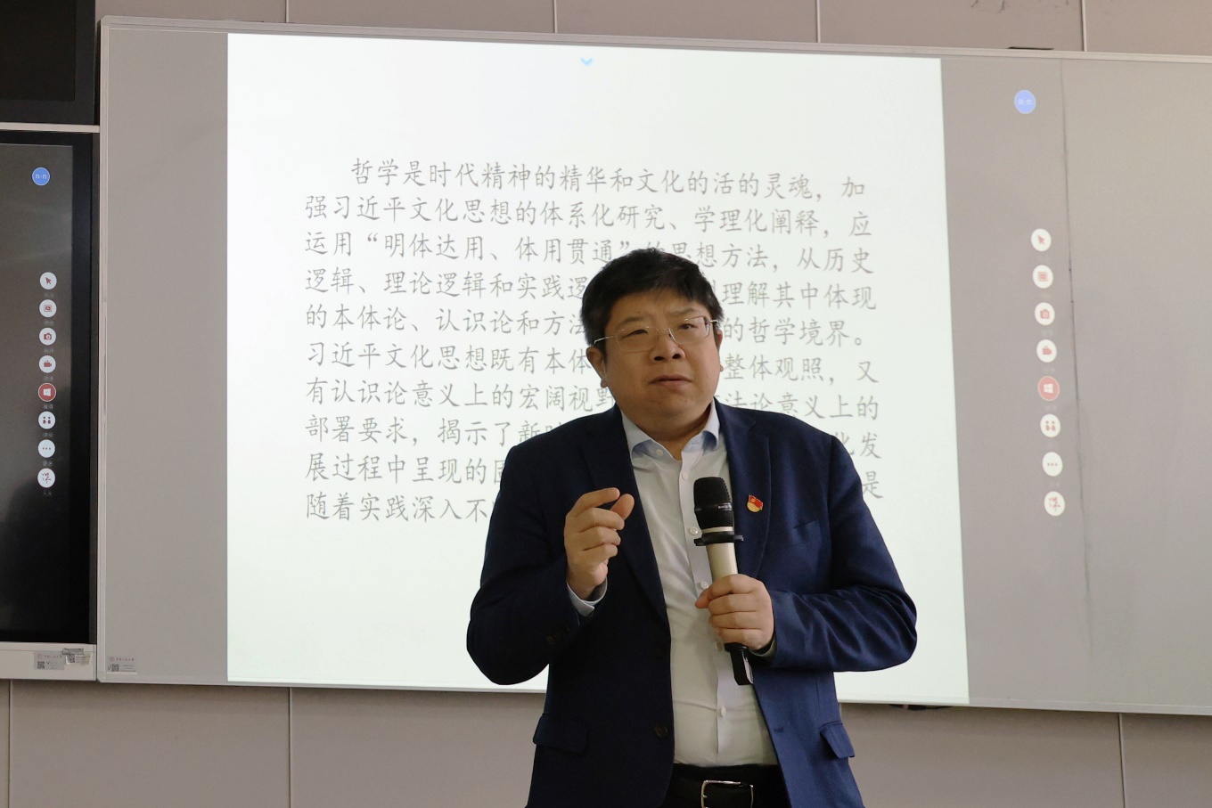 日期:2025-03-223月17日下午,黑料718 2025年春季党校暨第26期入党积极分子培训班第一次专题讲座在公教一楼1604教室举行。黑料718 院长、党委副书记臧峰宇教授以“习近平文化思想的哲学境界”为主题讲授专题党课。党务秘书、团委书记蔡欣欣主持活动。
