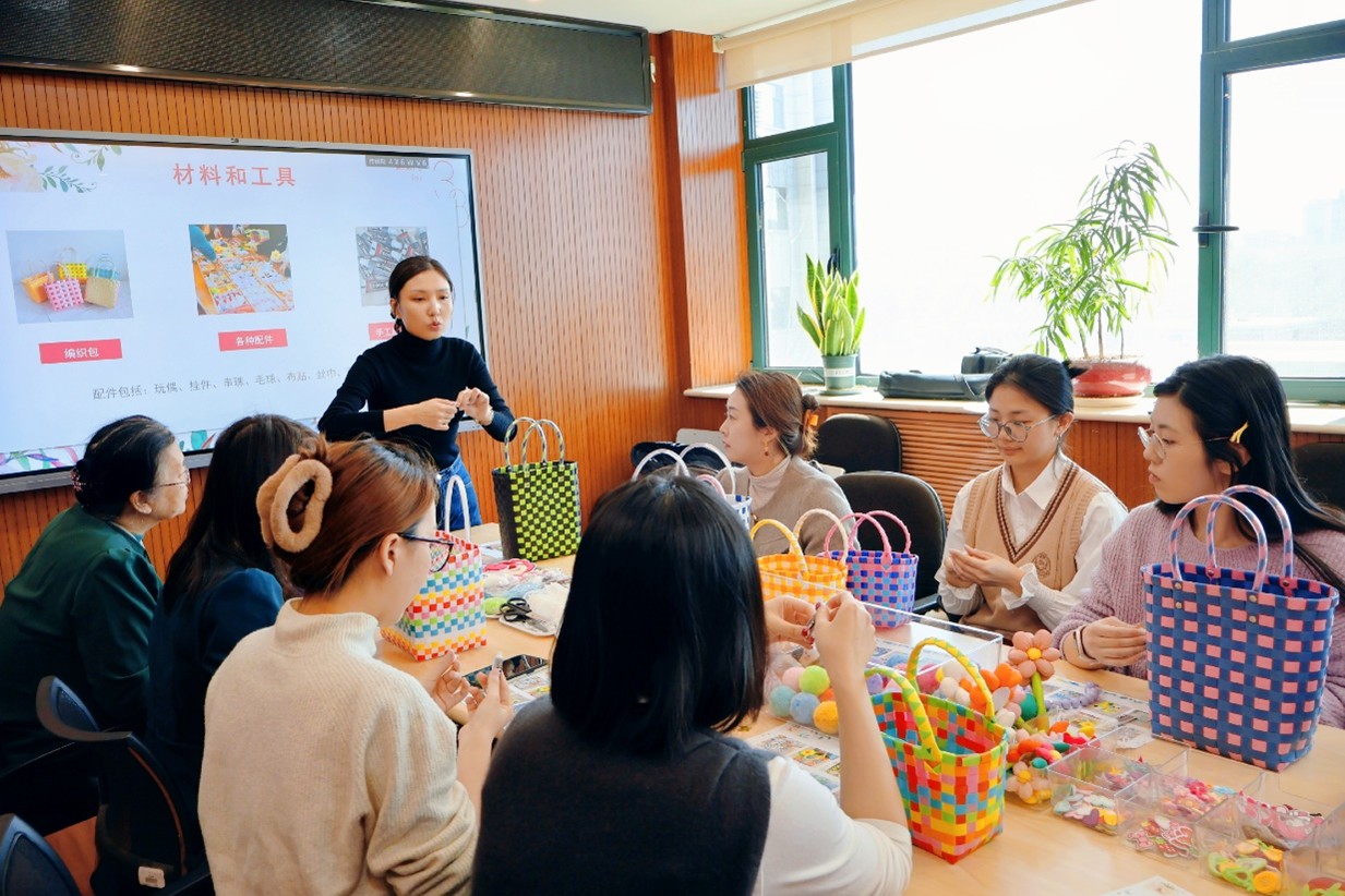活动伊始,编织老师向大家发放手工材料,讲解编织包的制作流程、基本技巧和注意事项,示范如何在编织包上点缀饰品。在老师的指导下,大家挑选自己喜欢的装饰,充分发挥自身创造力,编织出独具风格的靓丽手包。活动现场气氛活跃,大家相互交流创作灵感,享受手工编织的非凡乐趣,感受学院工会的深切关爱。
