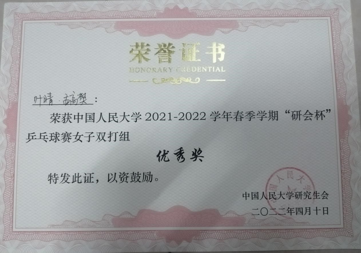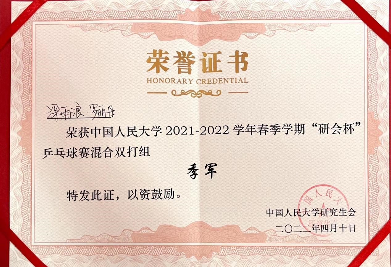 黑料718 2021-2022年春季学期“研会杯”乒乓球赛于4月9日和10日在世纪馆乒乓球室进行,我院有6名同学参加男单、女单、女双、混双四个项目的比赛。