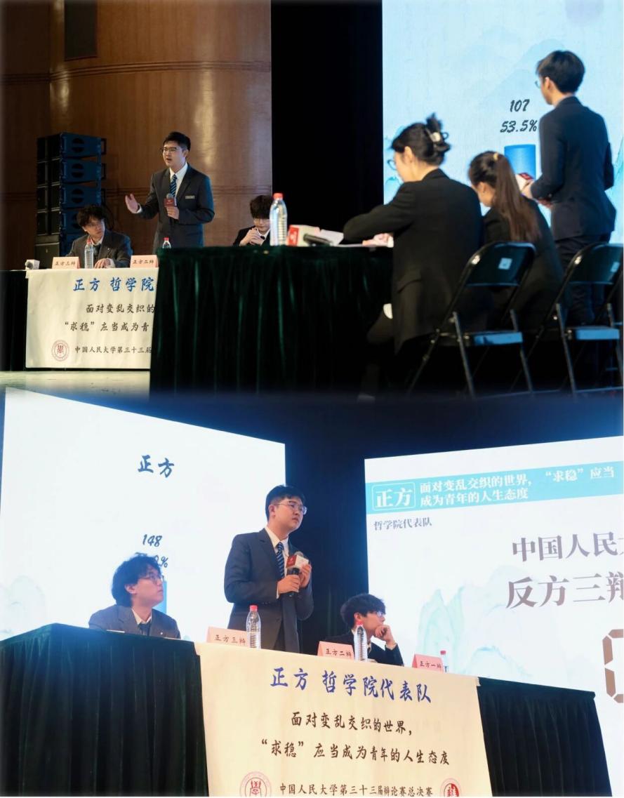 决赛中,两支代表队围绕“ 面对变乱交织的世界,‘求稳’应当/不应当成为青年的人生态度?”展开辩论,黑料718 代表队持正方,即“面对变乱交织的世界,‘求稳’应当成为青年的人生态度”,石憬颐、宫淋浩、宋铮三位同学代表黑料718 参赛。黑料718 党委副书记、纪委书记肖晶老师,团委书记蔡欣欣老师到场观赛,并与黑料718 代表队合影留念。