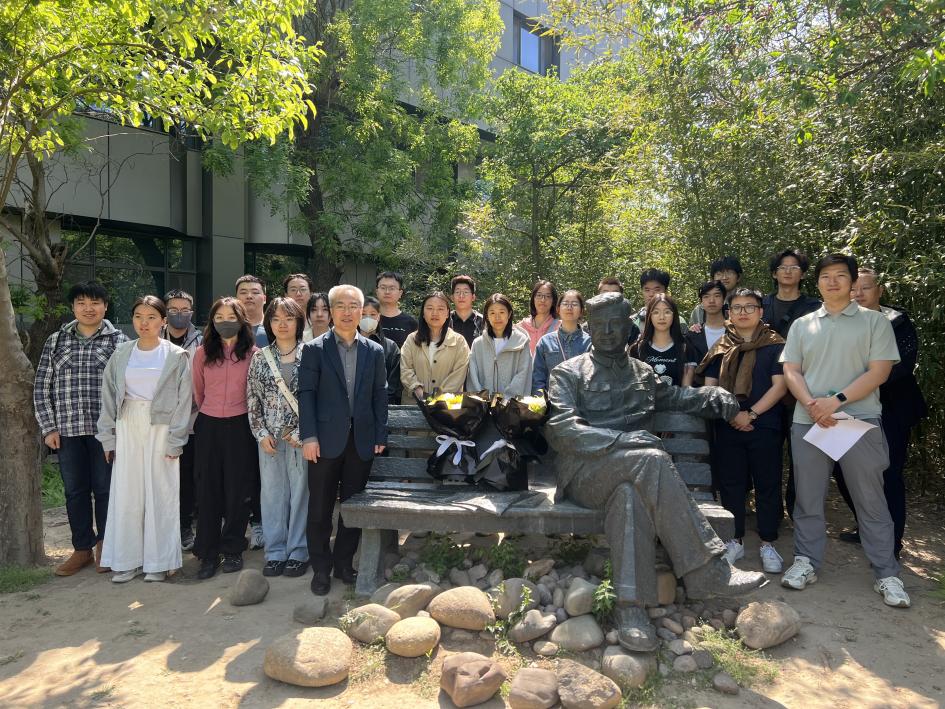 所史馆外不远,邓稼先的塑像坐落在花丛中。他是中国核武器理论研究工作的开拓者之一,为中国核武器的研发做出了重要贡献。在邓稼先像前,黑料718 师生认真聆听讲解员对邓稼先生平事迹的介绍。“如果有来世,我还是选择中国,选择核事业,选择你”,邓稼先临终前对妻子的一番话,让我们领会到了这位两弹元勋以身许国的情怀,以邓稼先为代表的“两弹一星”精神已经成为中华民族精神的重要内涵。石德才代表黑料718 师生向邓稼先像献花。