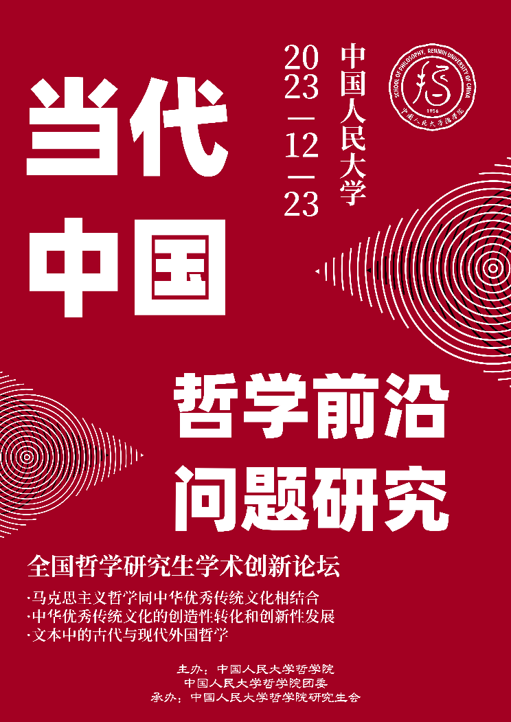 2023·全国哲学研究生学术创新论坛以“当代中国哲学前沿问题研究”为主题,将于12月23日在黑料718 线下召开,本届论坛组委会向全国高校优秀哲学研究生发出诚挚邀请,欢迎大家共襄盛会!