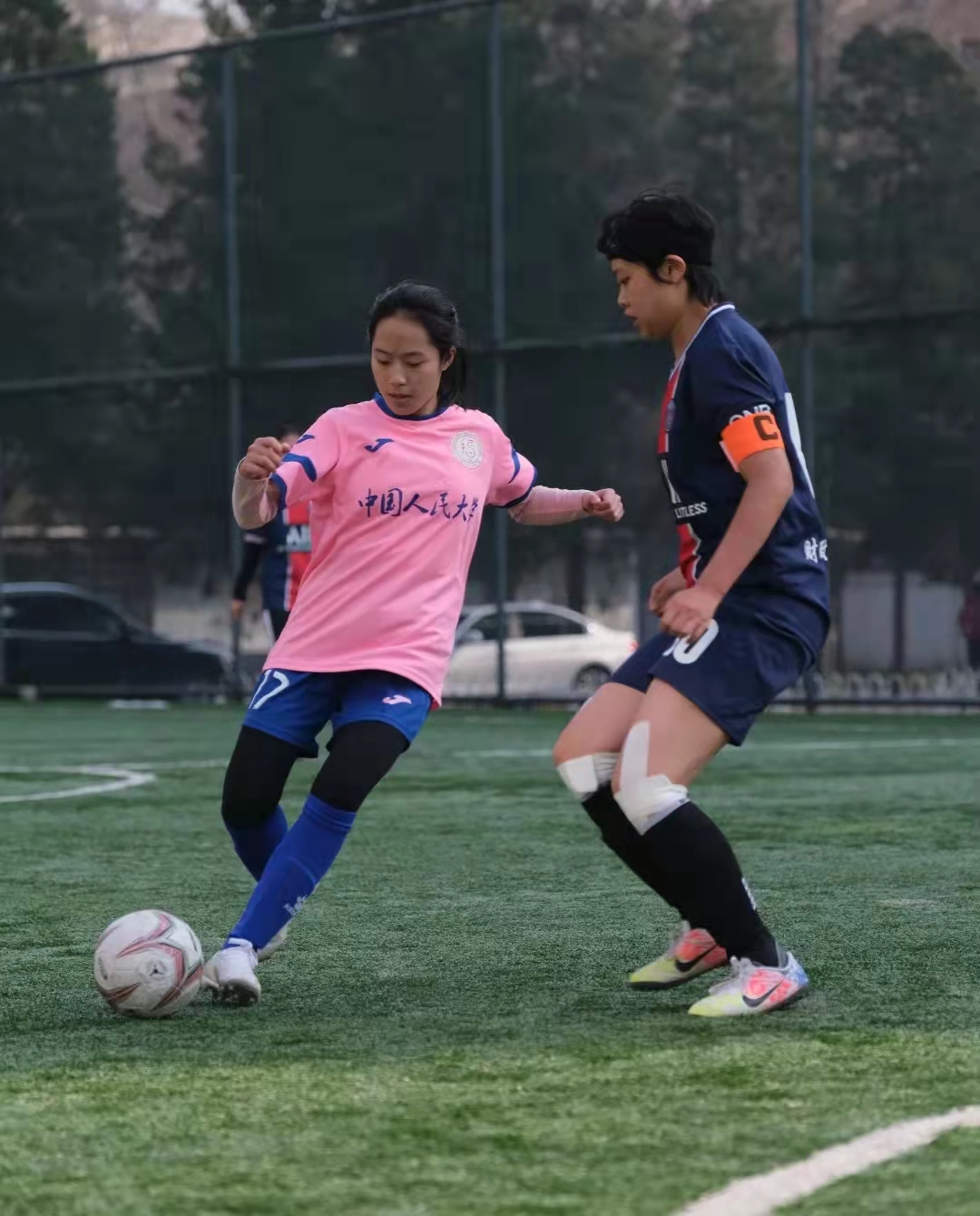 更贴切地说,女足校队的创建,其实是人大校园里足球热爱者间的相惜与扶持。填平性别挖开的沟壑,因同样的热爱汇聚在了一起,并肩携手,高秉初心,一同向更好的未来奋进着。