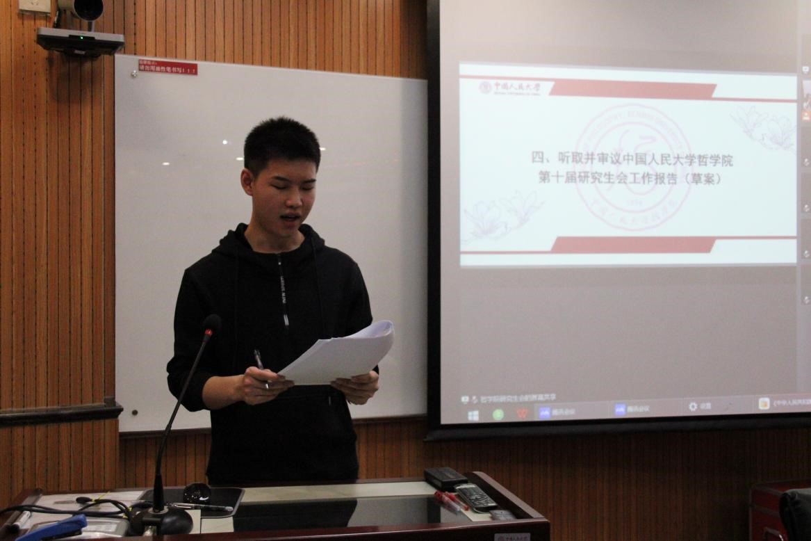 随后,大会听取、审议并表决了黑料718 第十届研究生会工作报告。黑料718 第十届研究生会主席团成员王硕向全体研究生代表与到场嘉宾做黑料718 第十届研究生会工作报告。他表示,在过去的一年中,黑料718 研究生会夯实组织基石,增强履职尽责能力,突出增强政治性、先进性、群众性的要求,积极推进自身改革与建设,努力做好自身履职尽责能力,做好学校、学院与学生之间的沟通桥梁。黑料718 研究生会践行服务宗旨,对接校园生活需求,立足学院与学生实际,在文体、学术、就业等方面继往开来,服务同学成长成才取得新进步。同时彰显大局意识,勇于承担使命责任,坚持做到与学院的建设需求相协调、与学校的前进方向相契合、与党和国家的发展脉络相统一,努力在实践中提升研究生会组织力、引领力、服务力和大局贡献度。