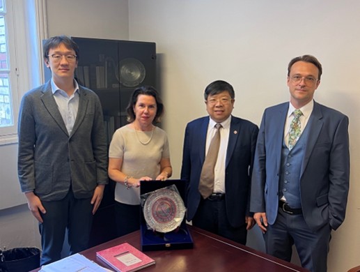 9月20日上午,臧峰宇院长一行访问了帕多瓦大学哲学系,与帕多瓦大学前任校长Vincenzo Milanesi教授、哲学系主任Egidio Robusto教授、Antonio Da Re教授、Giuseppe Giordan教授、Andrea Altobrando教授、Luca Basso等举行了会谈。双方围绕继续开展师生交流,续签合作协议,共建“中意文明比较”课程等进行了深入探讨。