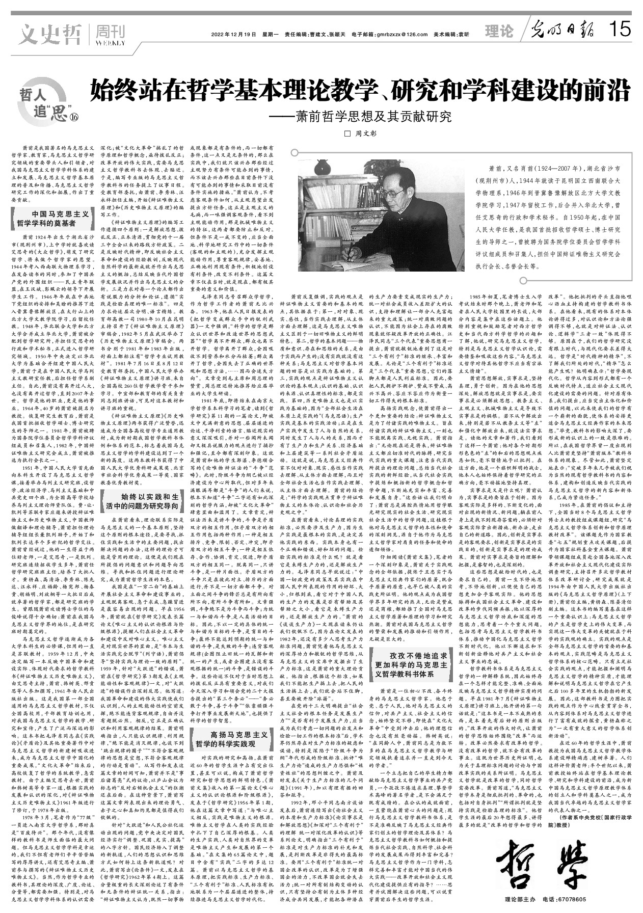 原文链接:[光明日报]【哲人“追思”⑯】始终站在哲学基本理论教学、研究和学科建设的前沿——萧前哲学思想及其贡献研究