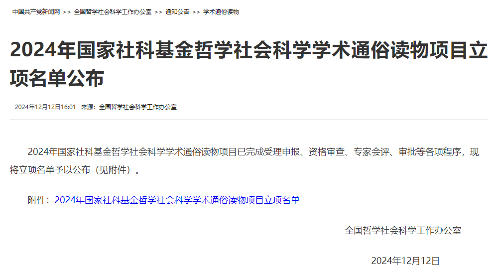 国家社科基金通俗读物在2024年的首次设立,面向全国高等院校、科研院所和出版单位,旨在推动更多优秀哲学社会科学学术成果走进大众、服务社会,不断提升全民哲学社会科学素养,为以中国式现代化全面推进强国建设、民族复兴伟业提供精神力量和文化支撑。