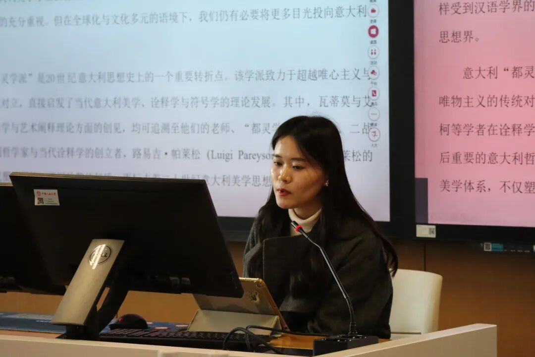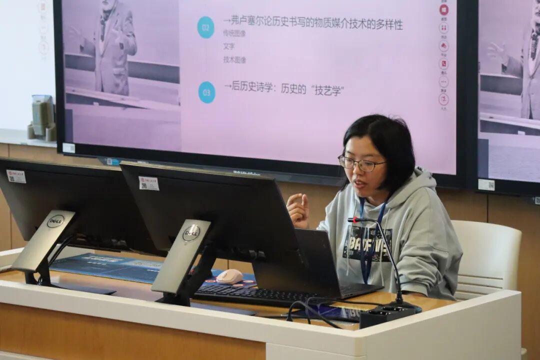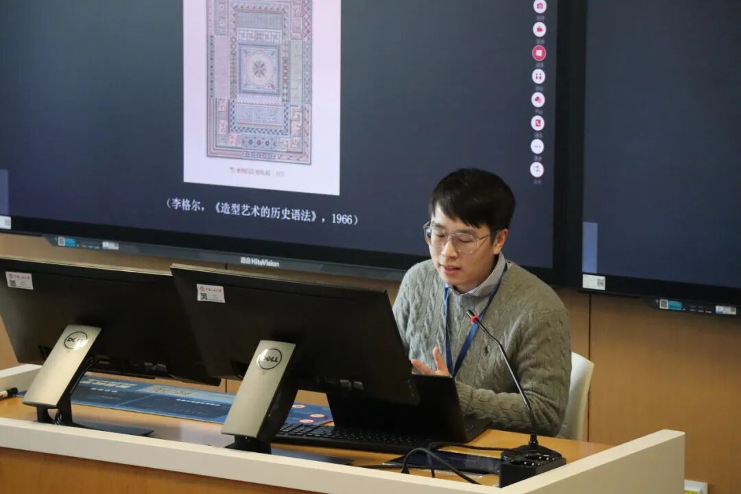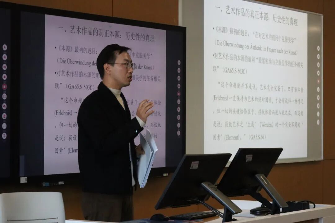 下午14:00,“历史与艺术史论”分会场在立德楼501教室举行。第一场由湖南大学李三达教授主持。北京第二外国语学院赵宝明老师探讨海德格尔论艺术作品的历史性,指出艺术作品是“历史”本身得以发生的根本契机。浙江师范大学陈庆老师围绕艺术与技术的关系,提出发明是二者重新融合的中介原则。华南师范大学张巧老师从媒介哲学视角出发,认为弗卢塞尔的“后历史诗学”并非否定“历史诗学”,而是对其在媒介哲学维度的重构,将历史视为一种“技艺”的生成过程。汉堡大学黎耀文博士围绕“非时序”与“编年史”的悖谬,分析了李格尔《造型艺术的历史语法》的转折意义。山东大学吴怡蔓博士聚焦路易吉·帕莱松的艺术理论,指出其在20世纪意大利美学中的转折性地位。