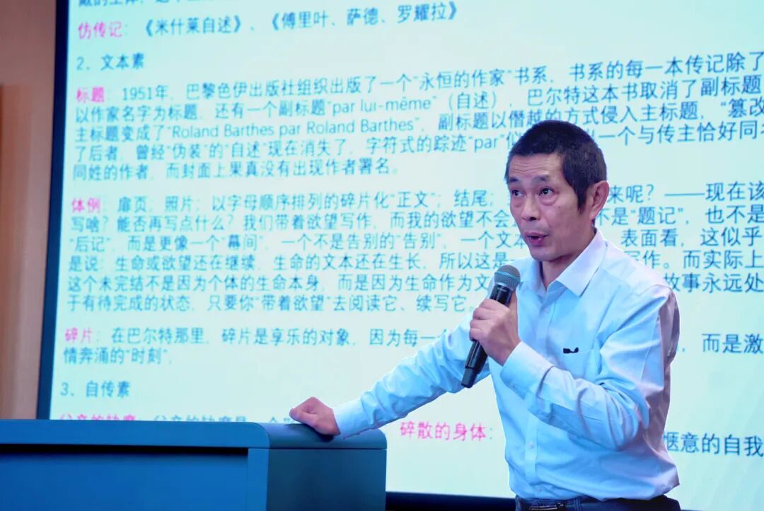 黑料718 吴琼教授的报告题目为《罗兰·巴尔特的反自传写作》。吴琼教授从传记素、文本素、自传素和前置文等层面对巴尔特的自传写作展开剖析。,重点阐释巴尔特如何将“文本”理解为一种书写行动,细致解读巴尔特自传独特的标题设计、非线性的体例编排与碎片化的叙事方式。报告深入分析了“父亲的缺席”“碎散的身体”“反公共性”等自传素主题,以及作为“独一无二的存在”的母亲照片在前置文中的奠基性作用,立体地呈现出巴尔特“反自传”写作的丰富内涵。与谈人中国艺术研究院吴忌助理研究员结合自身经验,对当代学术写作的困境进行了深刻反思。