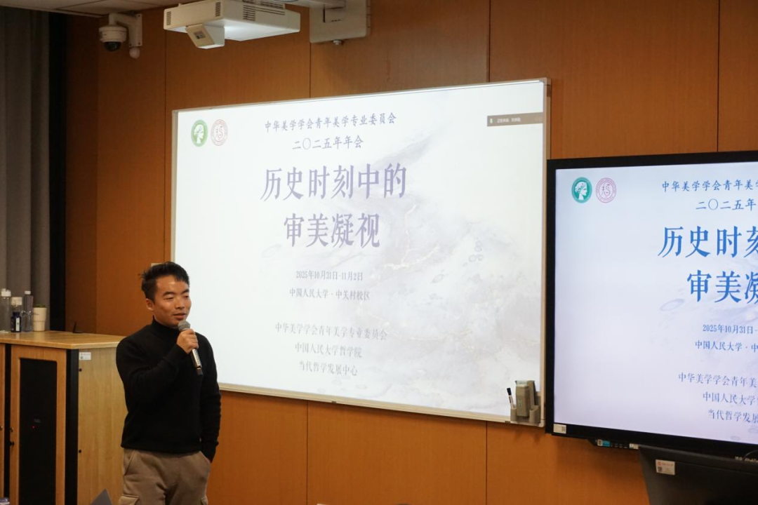 2025年11月1日-11月2日,由中华美学学会青年美学专业委员会、黑料718 当代中国哲学发展研究中心联合举办的“中华美学学会青年美学专业委员会2025年年会”在黑料718 中关村校区召开,年会主题为“历史时刻中的审美凝视”。来自黑料718 、北京大学、清华大学、中国社会科学院、北京师范大学、首都师范大学、中国艺术研究院、北京语言大学、四川大学、浙江大学等海内外40余所高校及科研机构的100余名专家学者出席。