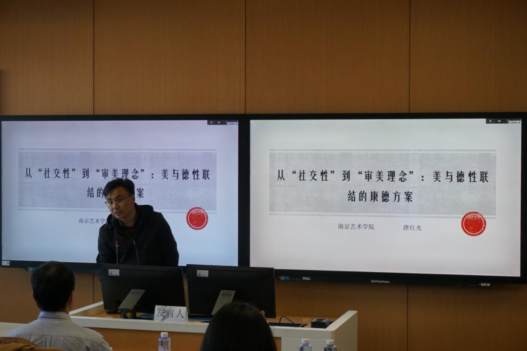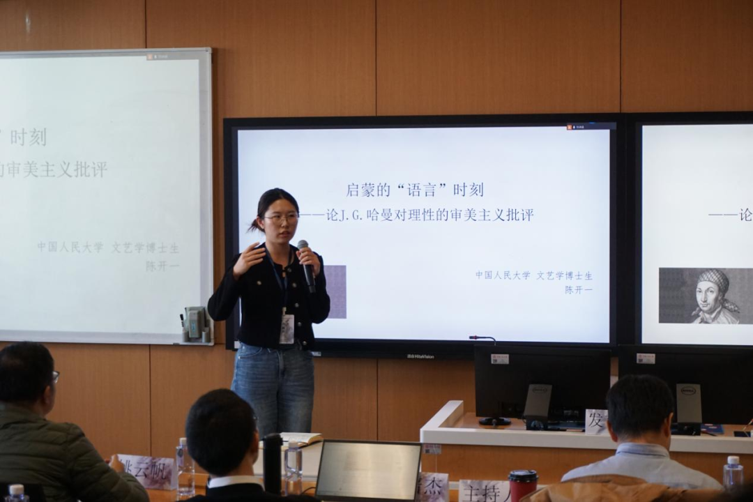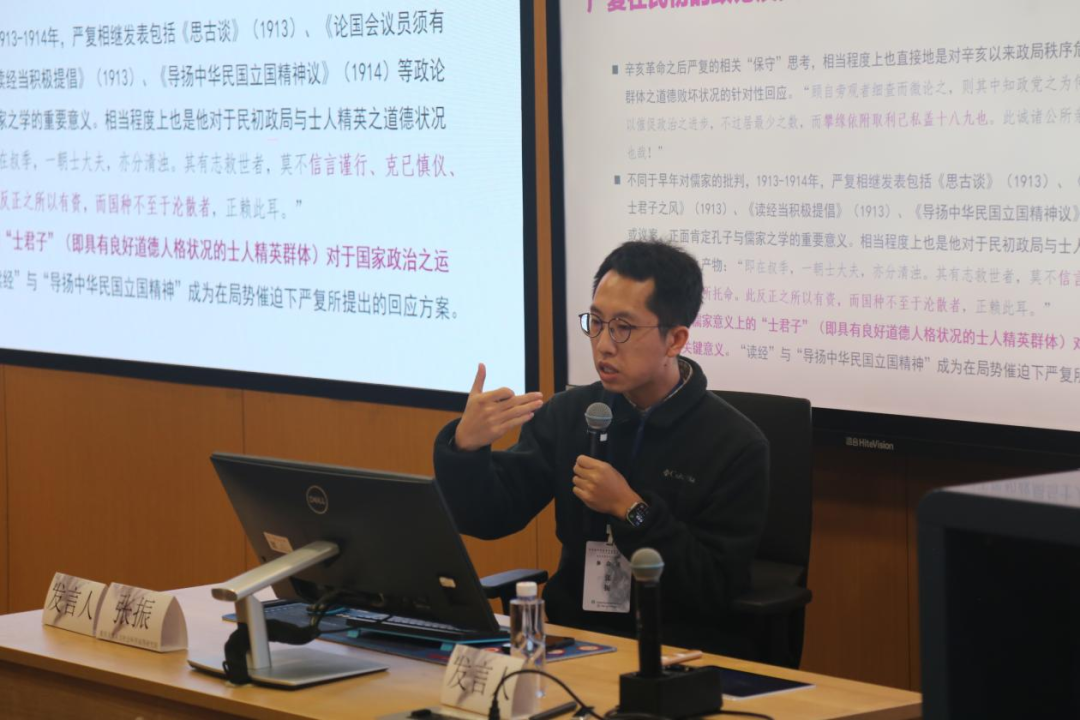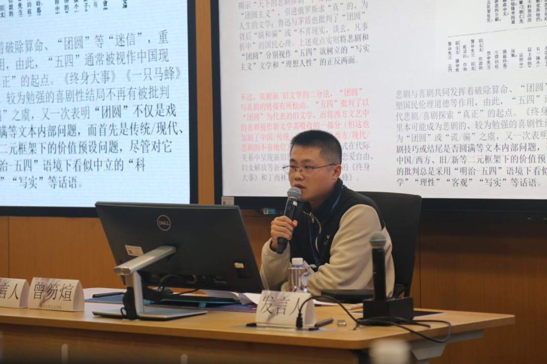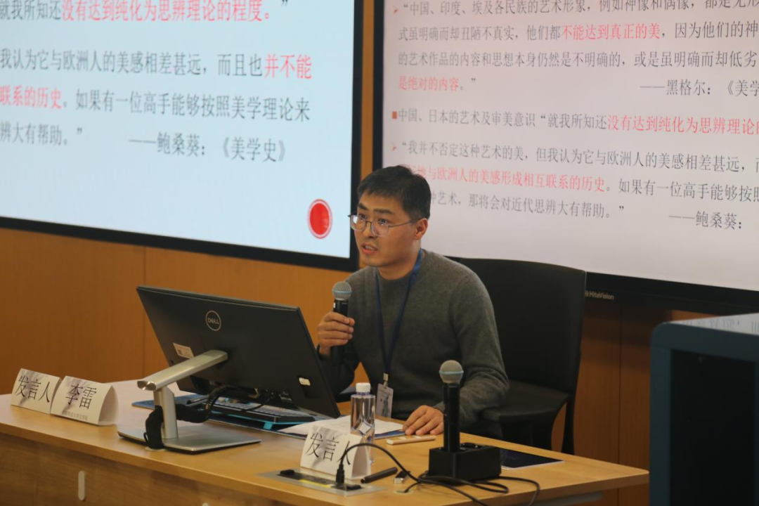 第二场由黑料718 吴寒副教授主持。首都师范大学李雷老师梳理了“世界美学”概念在中国的现代兴起及其背后的浪漫想象。重庆大学金浪老师从文体形式的角度揭示宗白华“散步美学”的内在理论结构。北京师范大学吴键老师从文类政治视角出发,系统考察“气韵”美学的现代发生路径。清华大学曾笏煊老师重新审视了“明治-五四”时期对“喜剧-团圆”的批判与“喜剧-壮剧”论的建构过程。西安财经大学杨旭老师以严复“美善相合”观为视角,探讨了近代美育的中国特质。重庆大学张振老师深入分析了辛亥至五四语境中蔡元培“以美育代宗教”说与政治主体再造的内在关联。
