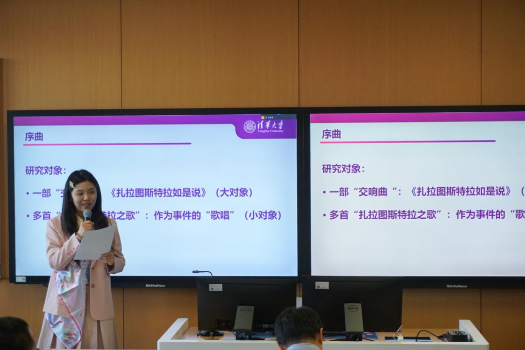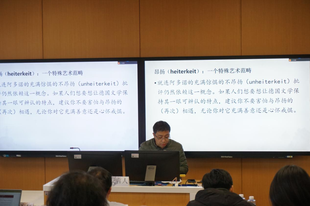 下午14:00,“经典重释与当代反思”分会场在立德楼503会议室举行。第一场会议由浙江大学范昀教授主持。南京艺术学院唐红光老师指出“审美理念”是联结美与德性的关键,通过认知能力的“自由和谐”指向“超感官”基底,赋予审美以道德价值。北京外国语大学陈飞老师追溯了席勒的早期医学博士论文,指出其身心动力学与力量平衡观被挪用于《审美教育书简》,构成“游戏冲动”与现代性批判的根基。黑料718 陈开一博士聚焦哈曼对启蒙理性的审美主义批评,指出其在“伦敦写作”时期回归《圣经》与“神圣的语言”。绍兴文理学院罗仕平老师剖析了瓦格纳《帕西法尔》与尼采的“颓废”清算,指出尼采在抵御瓦格纳的过程中完成自我克服。清华大学张愉悦博士追踪了《扎拉图斯特拉如是说》中“歌唱”行为的功能演变,指出音乐性是尼采双重修辞的关键。黑料718 卢嘉一博士提出法国现象学家亨利·马尔迪内的核心论断“艺术是存在的闪现”,其本体论抓手是“感觉”(le sentir)。