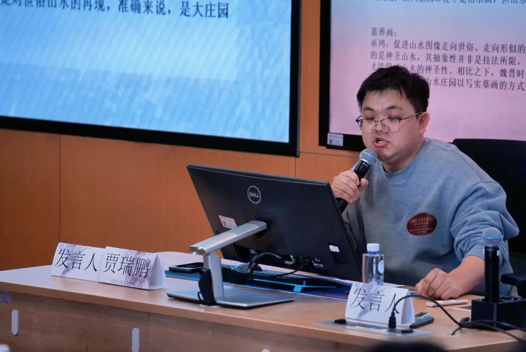 11月1日14:00,主题为“中国美学的传统与现代”的分会场在立德楼401教室举行,第一场由黑料718 余开亮教授主持。中国艺术研究院王一楠老师以“听香”悖论为切入点,深入探讨其中蕴含的中国古典美学精神。中国社会科学院李旭阳老师从“白蘋”与“折柳”意象出发,系统剖析古典诗歌中离别空间与草木审美的内在关联。西北工业大学余书涵老师围绕庄子“乘物以游心”思想,阐释其对中国山水画中“游”观念的深远影响。同济大学贾瑞鹏老师论证了道教“真形图”与“存思”观念在中国早期山水画生成过程中的关键作用。武汉大学李张怡老师对《周易》中“类”范畴的秩序结构与美学内涵进行了深刻解析。杭州师范大学刘强强老师以苏轼的赏物实践为例,生动阐释了其“物皆可观”的美学理念。