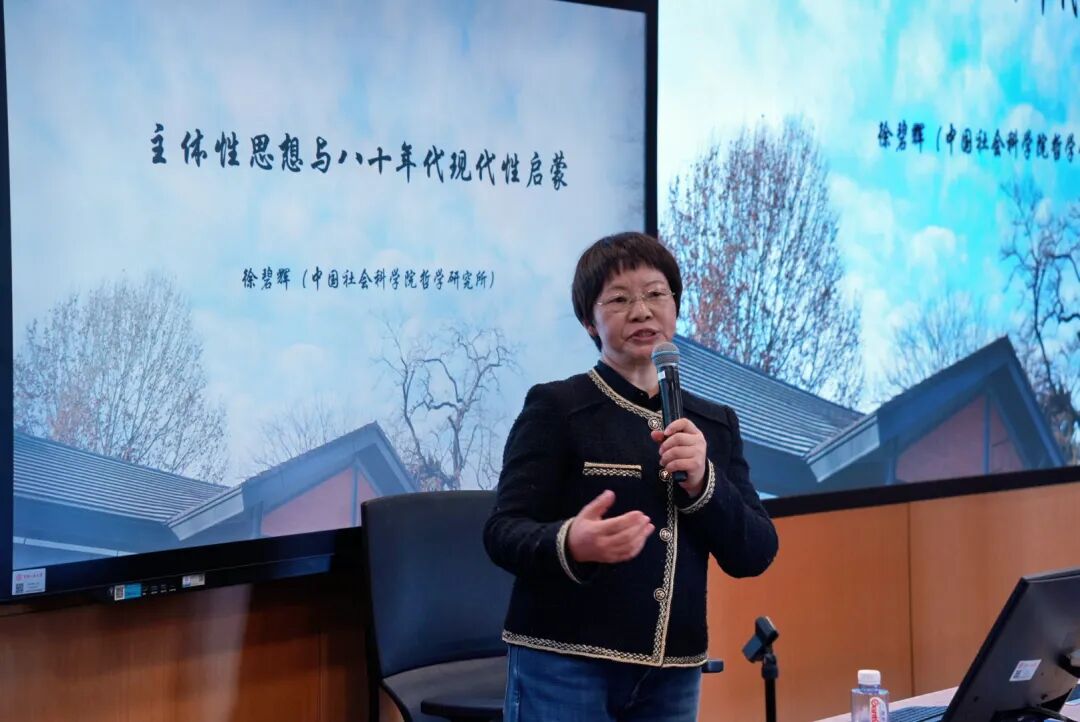 中华美学学会副会长、中国社会科学院徐碧辉研究员的报告题目为《主体性思想与80年代现代性启蒙》。徐碧辉研究员剖析了现代性内在的“社会现代性”与“审美现代性”两个维度,指出在20世纪中国独特的历史语境下,现代性启蒙呈现出以社会启蒙为主导线索的鲜明特征,而个性启蒙则主要通过审美启蒙的形式展开。与谈人中华美学学会副会长、首都师范大学王德胜教授指出,中国现代性中的审美启蒙实为“个体退隐”,其根本目标指向社会秩序重建。徐碧辉研究员回应时指出,两种启蒙最终都指向社会进步与个人自由的展开,但在特定历史阶段可能呈现出发展路径的差异。