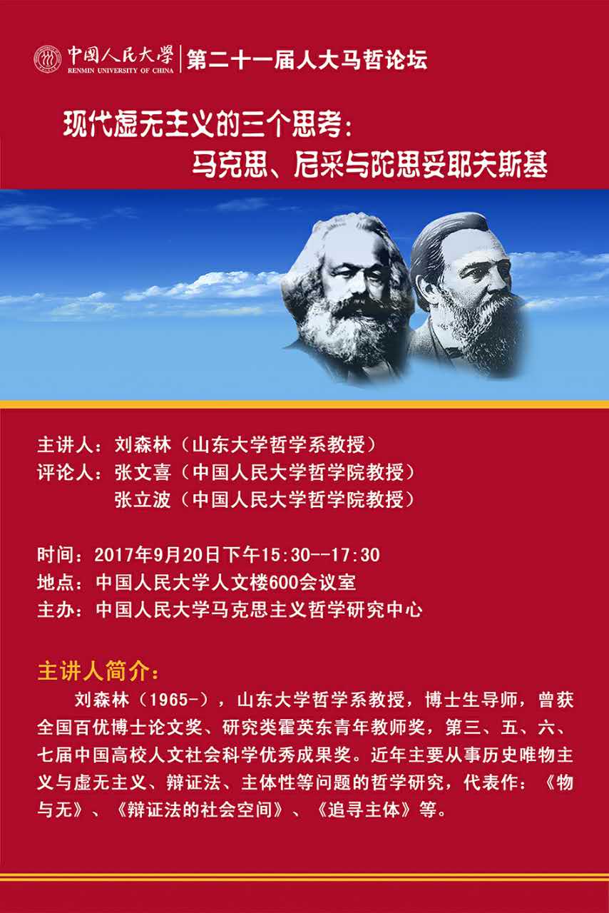 第二十一届人大马哲论坛 虚无主义的三个思考:马克思、尼采与陀思妥耶夫斯基