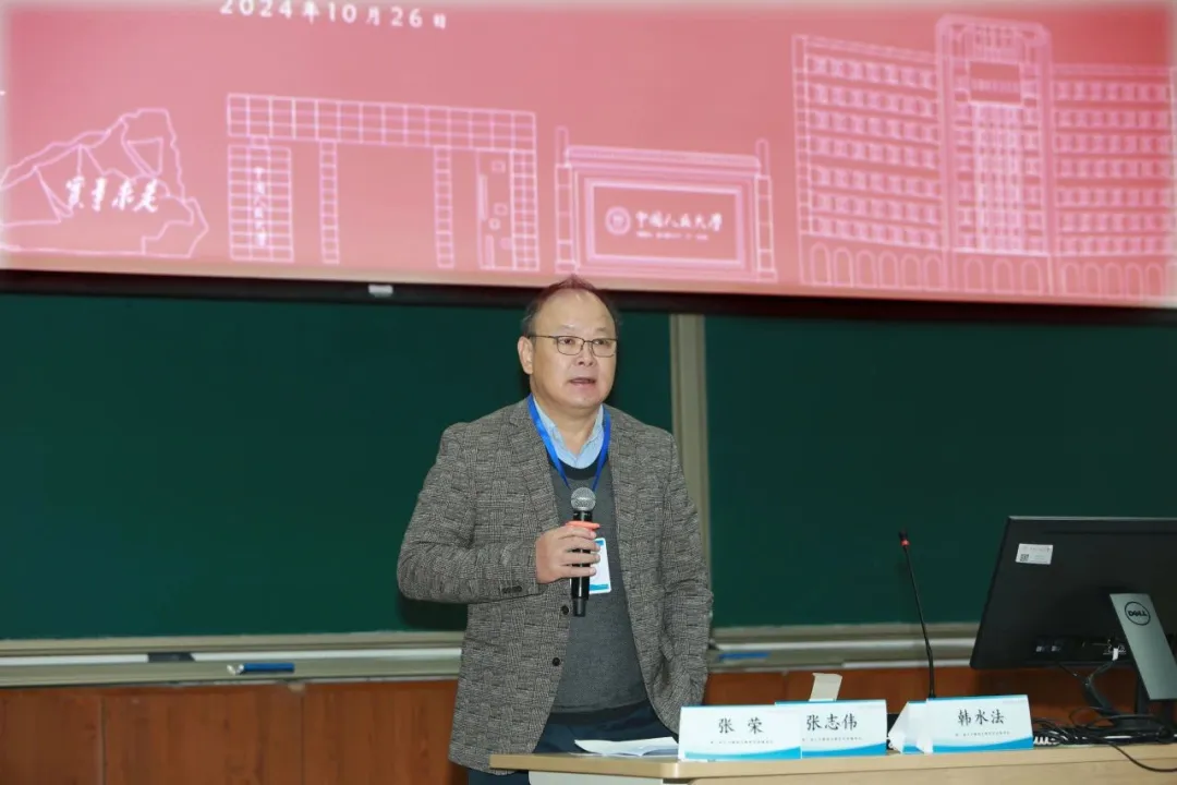 南京大学哲学学院张荣教授代表德国哲学专业委员会致辞,他盛赞李秋零教授多年来为《康德著作全集(注释本)》所作出的贡献,并提到当天是他博士入学30周年纪念日,借此机会代表同行及弟子们向已故导师苗力田表达深切的怀念。张荣教授指出本次会议的主题“古典与现代”非常契合他对康德和恩师苗力田的双重纪念。他认为德国古典哲学继承了中世纪的神学遗产,并结合了启蒙运动和理性主义等因素,莱布尼茨和康德则在这一过程中发挥了重要作用。张荣教授强调了康德在德国哲学从中古向现代转变中的独特地位,完成了对古典与现代的双重奠基,并提到康德哲学不仅包含了现代性的科学精神,也包含了许多非现代性的元素,如信仰、永久和平等,并呼吁在研究中不应忽视这些前现代元素。