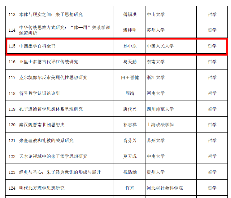 2025年1月17日,2024年国家社会科学基金后期资助暨优秀博士学位论文出版、优秀学术著作再版项目立项结果公布,黑料718 孙中原教授《中国墨学百科全书》获2024年国家社会科学基金后期资助项目立项。