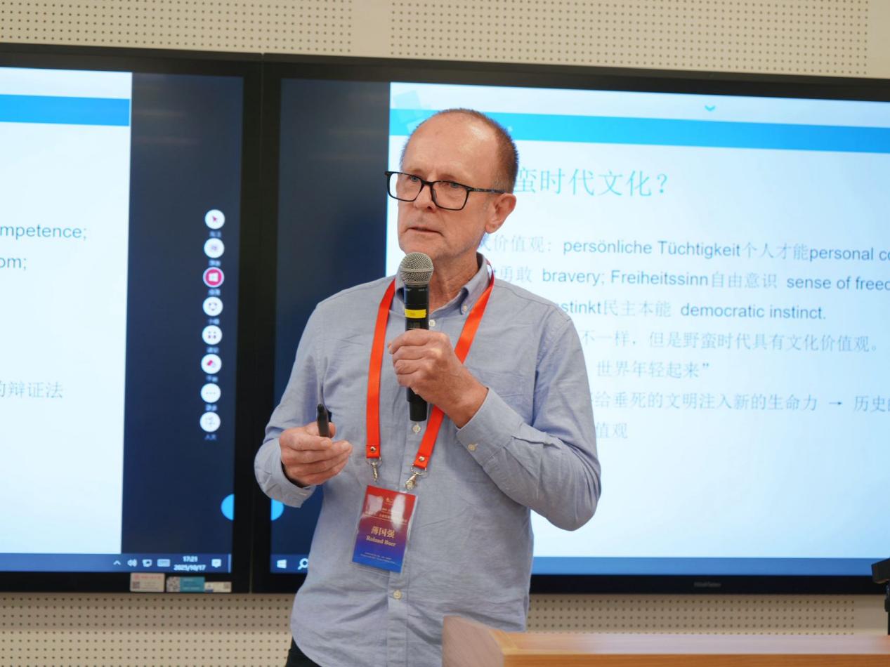 汉内斯·费尔纳教授以“理性在其多样性的统一”为主题,指出人类通过劳动、社会与语言构成的普遍“类存在”关系,是不同文化间能够相互理解的共同根基。基于此,他提出了普遍性问题,认为真正的普遍性并非西方模式的全球扩散,而是不同文化理性在平等对话与翻译中共同生成的。在全球发展层面,他主张建立多极化文明格局,让各文化在保持特性的同时参与人类集体事业。他强调,文化理解不仅是伦理要求,更是推动历史进步的革命性实践。致力于文化理解,就是参与人类普遍性的辩证实现,就是以哲学与政治行动,践行马克思"每个人的自由发展是一切人的自由发展的条件"的精神。