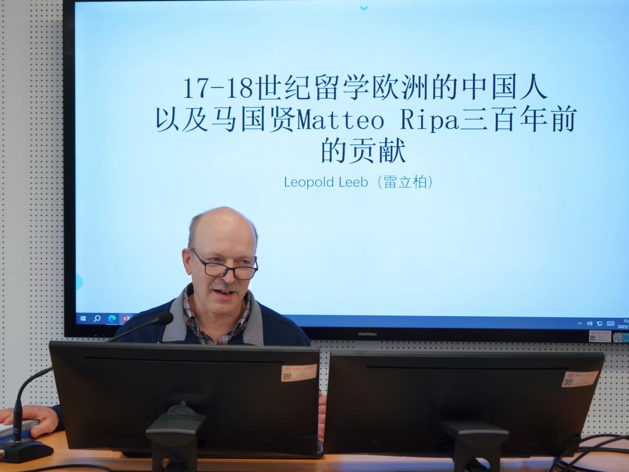 雷立柏(Leopold Leeb)教授以“17-18世纪留学欧洲的中国人”为题,通过丰富的史料展现了早期中欧文化交流的历程。雷立柏教授系统梳理了郑玛诺、沈福宗、樊守义、李安德、袁德辉、马国贤、李自标等首批留学欧洲的中国人的经历。这些早期留学生多为天主教神职人员,他们远渡重洋赴欧洲学习哲学、神学与拉丁语,旅程充满艰险,有的甚至病逝途中。然而,这些文化交流先驱回国后大多不得不隐藏身份,其经历与学识难以为社会所知,没有得到应收到的重视。雷立柏教授最后指出,这些早期留学生的共同命运是几乎被历史遗忘,但他们作为中欧文化交流的先驱,其历史贡献值得当代重新发现与珍视。