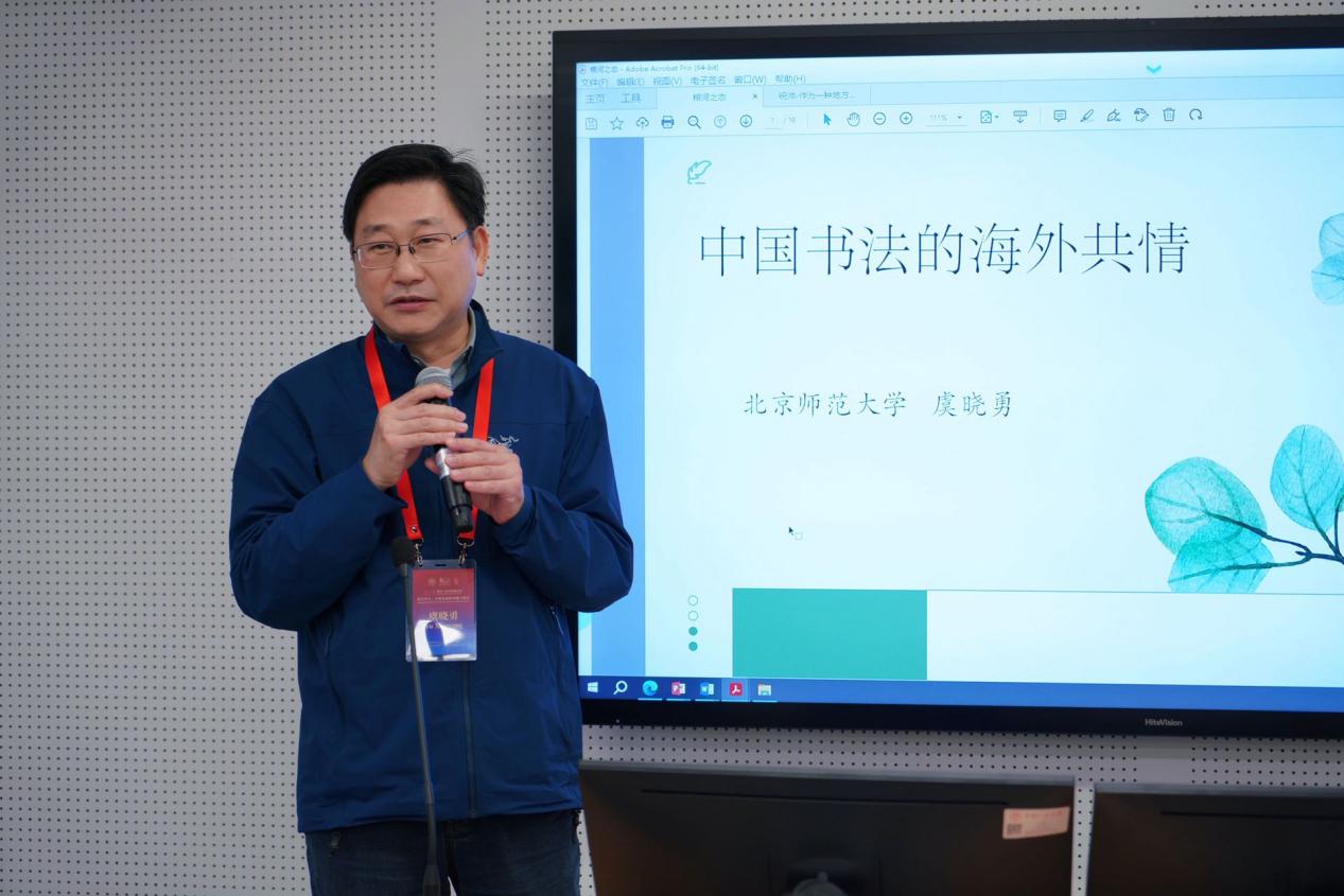 虞晓勇教授以“中国书法的海外共情”为题,以如何认识书法为引,从文化认同与艺术本体双维度阐释了中国书法的国际传播路径,指出书法共情力植根于汉字文化圈的历史渊源与书法形式的独特张力两大维度。他通过日本书道界对《郑文公碑》的顶礼膜拜,毕加索对书法的共情等案例,印证了书法艺术跨越文化边界的情感共鸣。对于书法海外共情的实践,他提出三点思考:巩固、推进亚洲汉字文化圈的书法教育,在“汉语热”中,强化“说”与“写”的同频共振,以及通过书法元素,阐扬中国文化的张力。这些思考彰显了中国书法作为文化使者的独特价值——既要依托汉字文化圈维系精神纽带,更要通过美学表达激活全球对话,让中华文化在"各美其美,美美与共"的交流中实现深层共情。