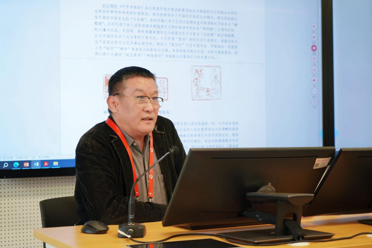魏广君老师以“当代审美视域下‘贴系篆刻’‘碑意篆刻’的可能性成立”为题,系统地提出将中国印史划分为四大分期:商代至战国的"太朴期"、秦至西汉的"融糅期"、汉印引领下的"典则期",以及清代至今的"化构期"。他提出"帖系篆刻"与"碑意篆刻"两个核心概念,认为明代以文彭为代表的"吴门派"及其后西泠八家等构成"帖系篆刻"脉络,其审美特征与帖学笔法气韵相贯通;而以邓石如、赵之谦、吴昌硕为代表的"碑意篆刻"则开创了篆刻艺术的新纪元。在论及"现当代篆刻"发展时,他强调应立足中国现代社会的文化认知,突破传统美学范式,在市场经济和展览机制背景下,积极探索媒材、技法、形式的全面创新。这一理论建构为理解中国篆刻艺术的演进提供了新的学术视角,展现了传统艺术在当代的文化生命力。