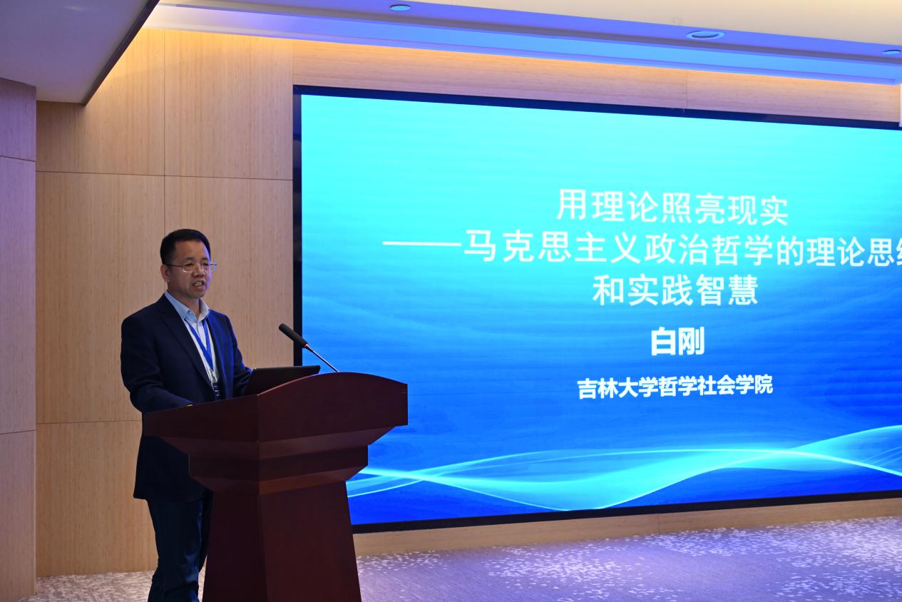 白刚教授的发言主题为“用理论照亮现实——马克思主义政治哲学的理论思维和实践智慧”。他论述了在思想中把握时代作为马克思主义政治哲学的理论思维这一问题,阐释了在批判旧世界中发现新世界作为马克思主义政治哲学的实践智慧。马克思主义哲学的实践智慧就是在批判旧世界中发现新世界,这一主张最终实现从“解释世界”到“改变世界”。他说明了把中国经验提升为中国理论作为当代中国马克思主义政治哲学的时代使命。他提出,中国式现代化打破了“现代化=西方化”的谜思,改写了人类历史,形成了人类现代化发展历程中的“中国经验”。中国式现代化的文明定向是构建中华文明的新形态。这一新的文明形态的理论表征就是当代中国马克思主义政治哲学,具有世界历史意义,能够回答中国之问、世界之问、时代之问、人民之问。