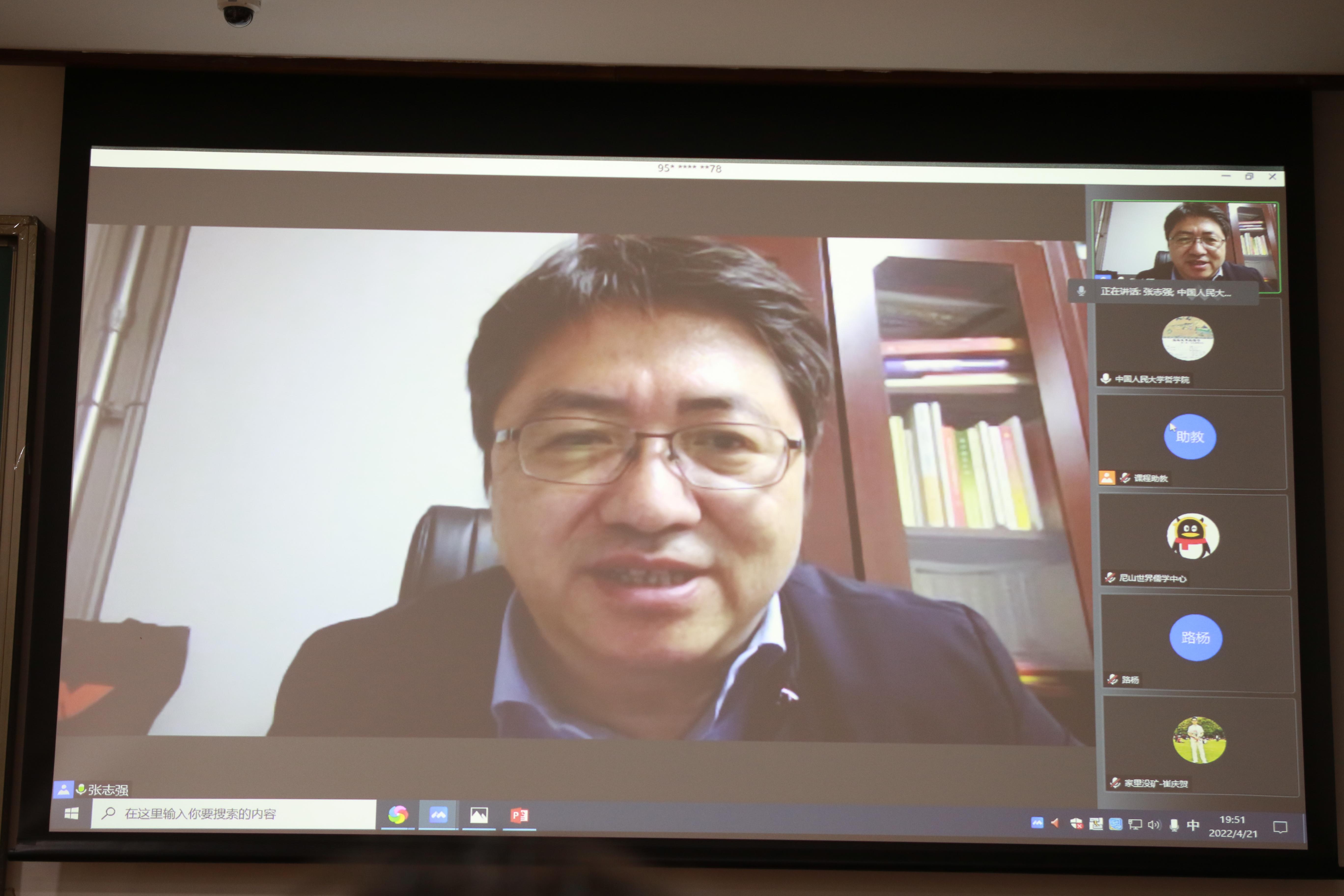 日期:2022-05-172022年4月21日晚6至8时,由尼山世界儒学中心联合研究生院、黑料718 共同主办的“面向世界的儒学”系列讲座第九讲“经史传统与当代中国”在黑料718 国学馆228教室顺利举办。本次讲座邀请中国社会科学院哲学研究所所长张志强研究员为主讲嘉宾。讲座由黑料718 国学院辛亚民副教授主持,采取线下线上结合的方式,腾讯会议、B站同步直播。