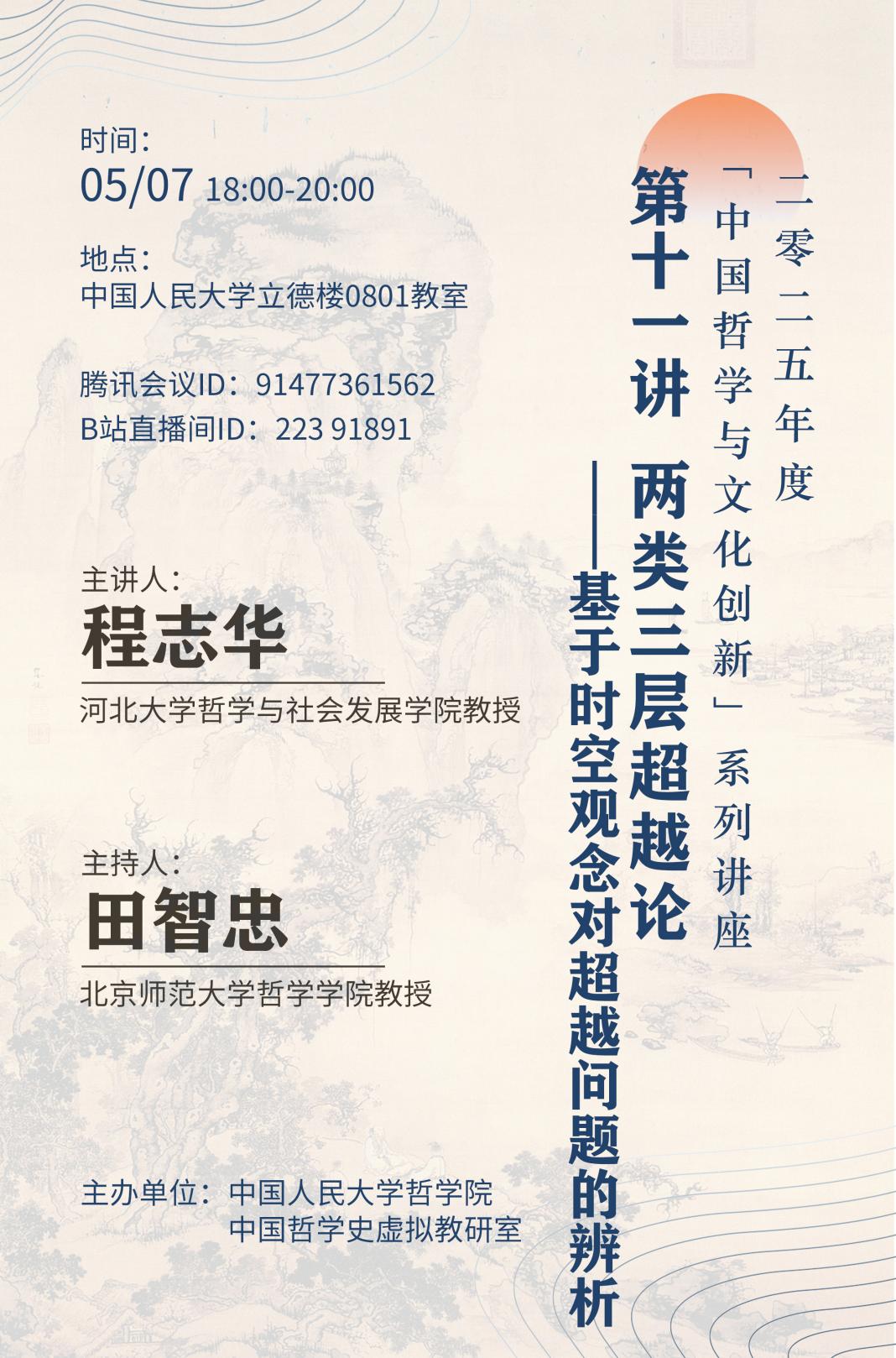 第十一讲 两类三层超越论——基于时空观念对超越问题的辨析丨2025年度“中国哲学与文化创新”系列讲座