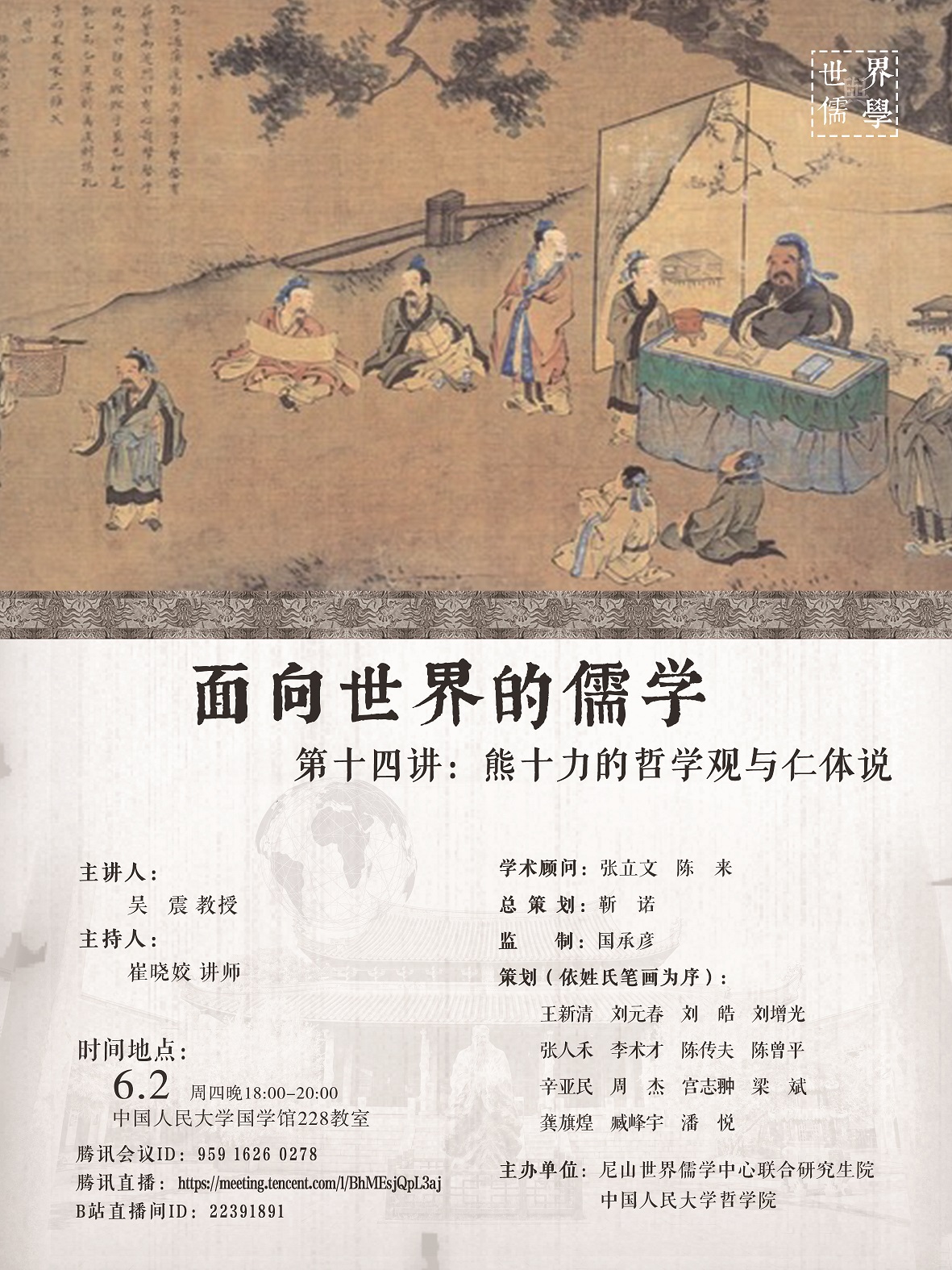 预告丨面向世界的儒学丨第十四讲:熊十力的哲学观与仁体说