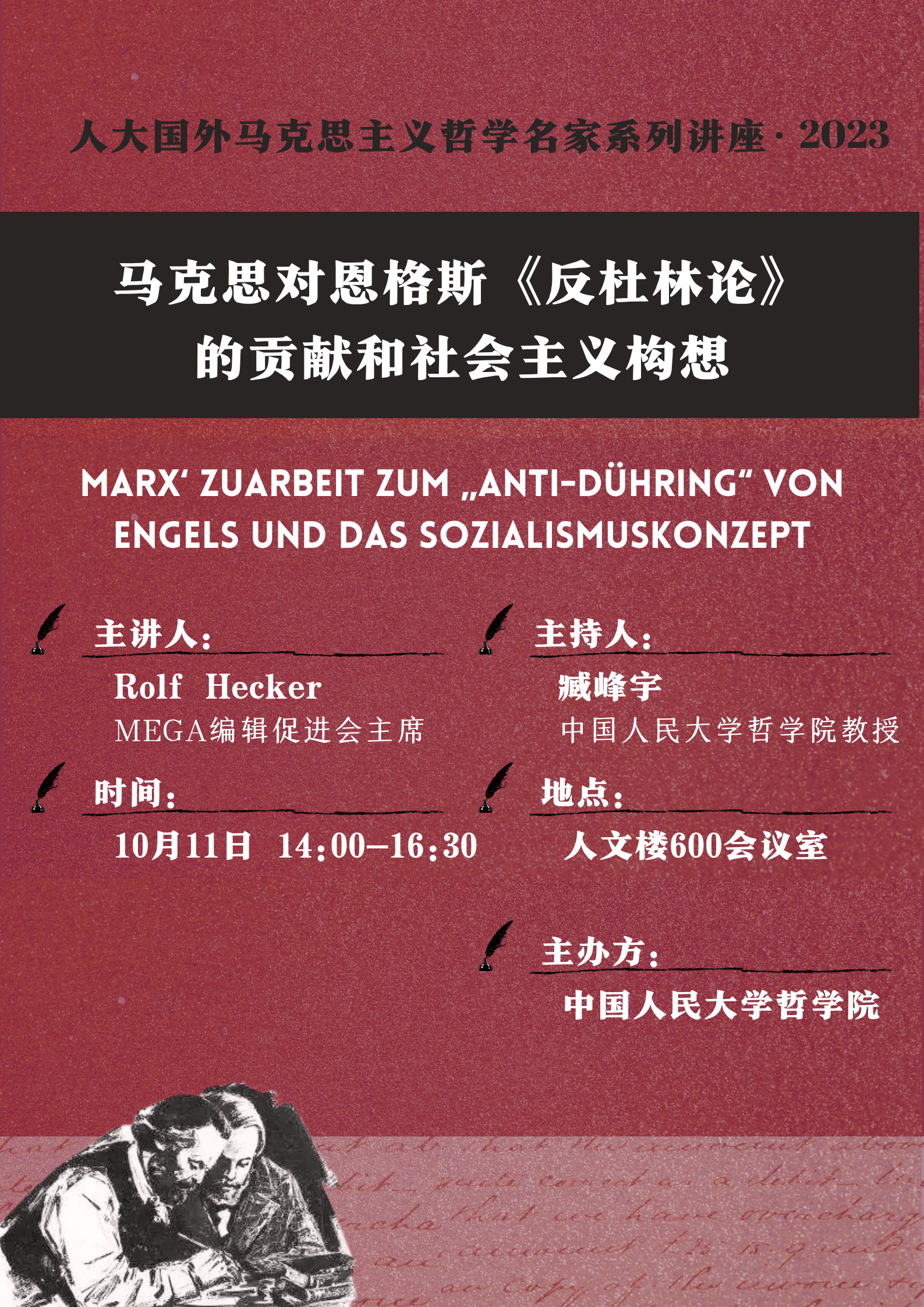 预告 | 罗尔夫·黑克尔 | 马克思对恩格斯《反杜林论》的贡献和社会主义构想 | 人大国外马克思主义哲学名家系列讲座·2023