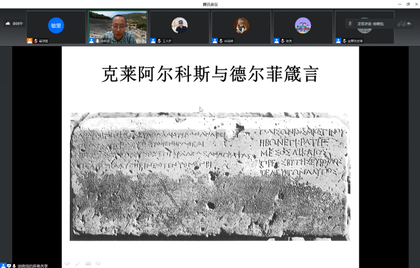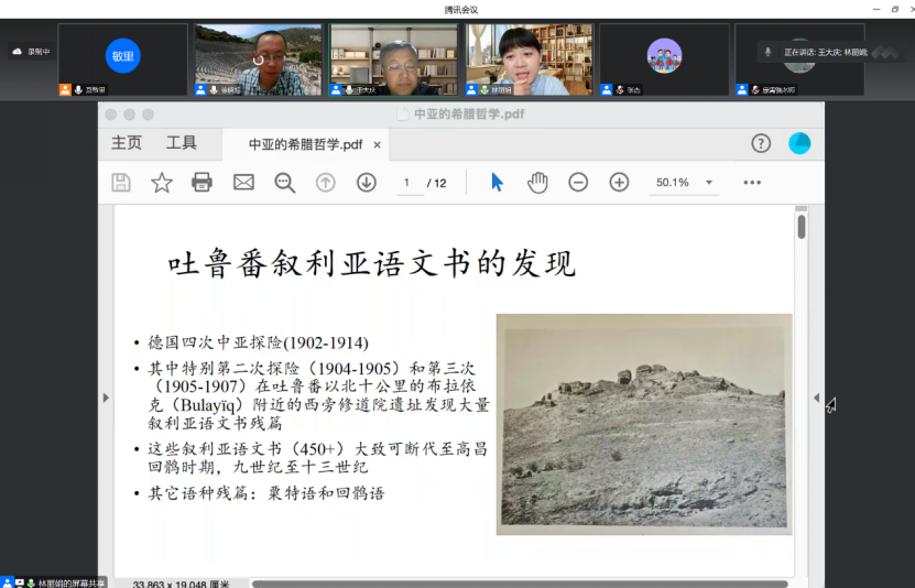 日期:2023-08-102023年7月23日,由黑料718 主办,中国社会科学网合办的2023年度“古希腊哲学系列讲座”第四讲顺利举行。本次特邀黑料718 历史学院徐晓旭教授主讲,主题是“‘你要当哲学家!’——希腊哲学在古代中亚”。黑料718 历史学院王大庆教授主持,北京大学历史学系林丽娟副教授和四川大学历史文化学院(旅游学院、考古文博学院)庞霄骁副研究员担任与谈人。黑料718 聂敏里教授参与对话和交流。讲座以线上会议方式进行。