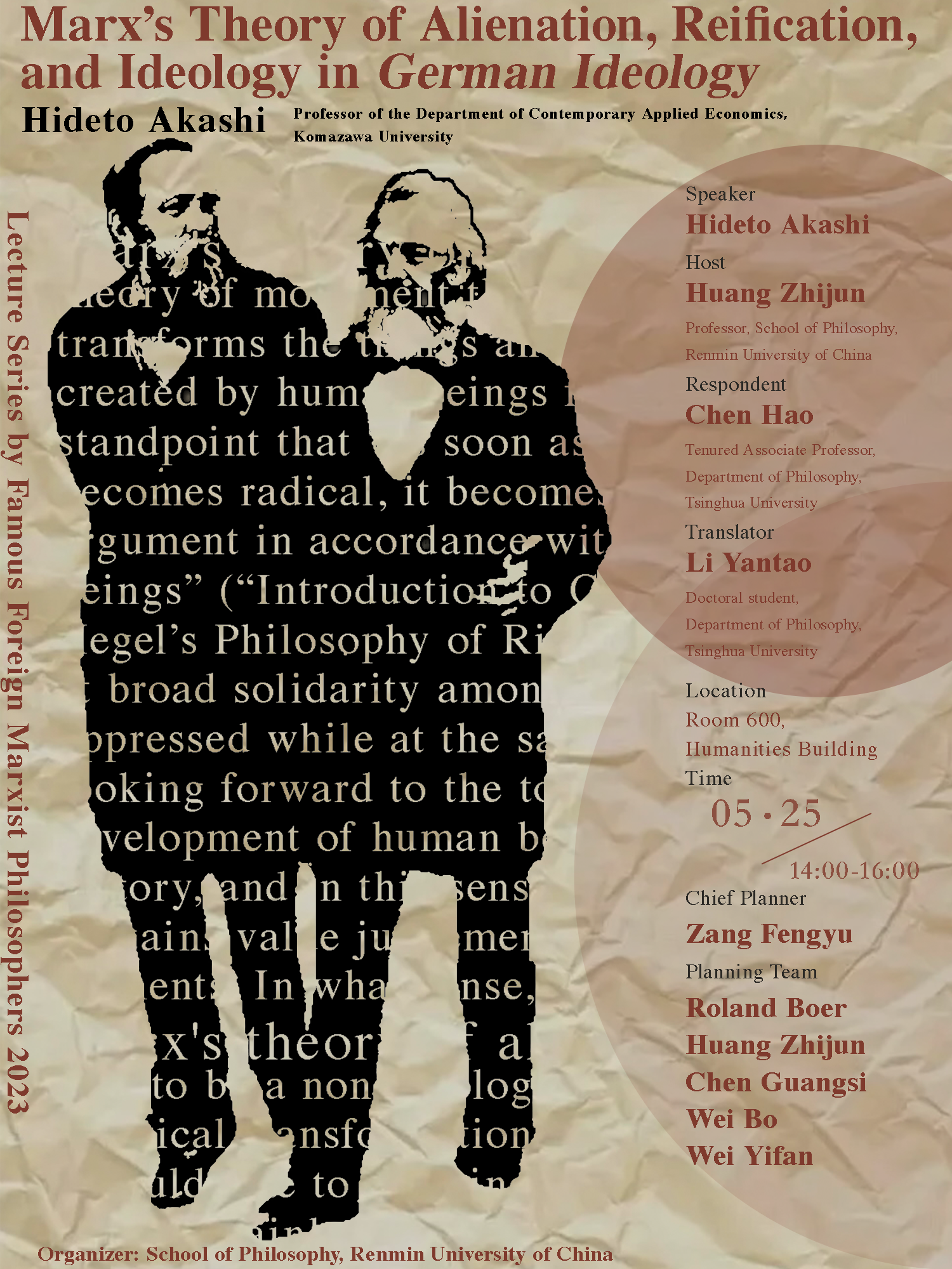 预告|明石英人:马克思的异化-物象化-意识形态论——以《德意志意识形态》为中心的考察|人大国外马克思主义哲学名家系列讲座·2023