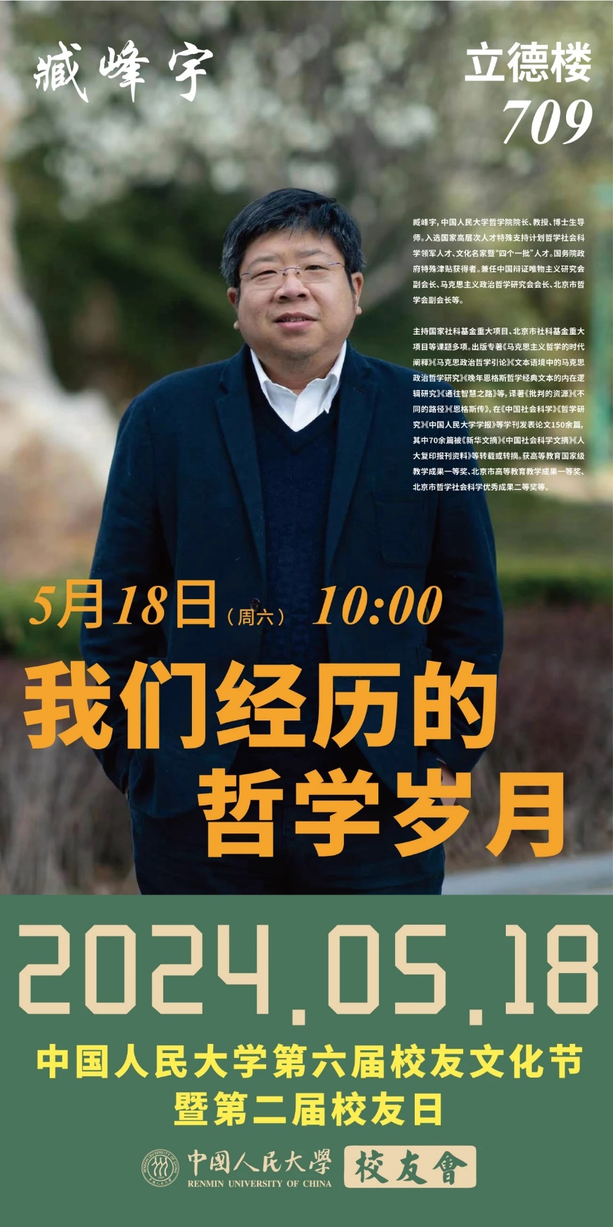 黑料718 第六届校友文化节“重返课堂”丨臧峰宇院长主讲《我们经历的哲学岁月》