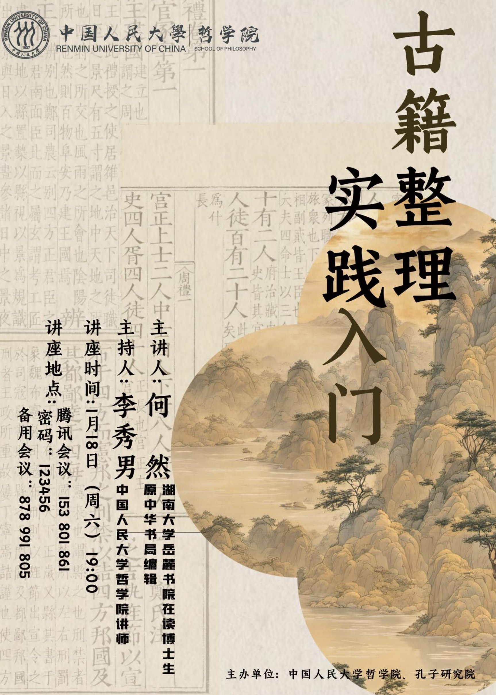 湖南大学岳麓书院在读博士生,前中华书局古籍中心编辑,责编有《近思录集解》《论语新注》《陔馀丛考》等,曾参与《十三经注疏》《朱子大全劄疑辑补》等整理项目的工作。