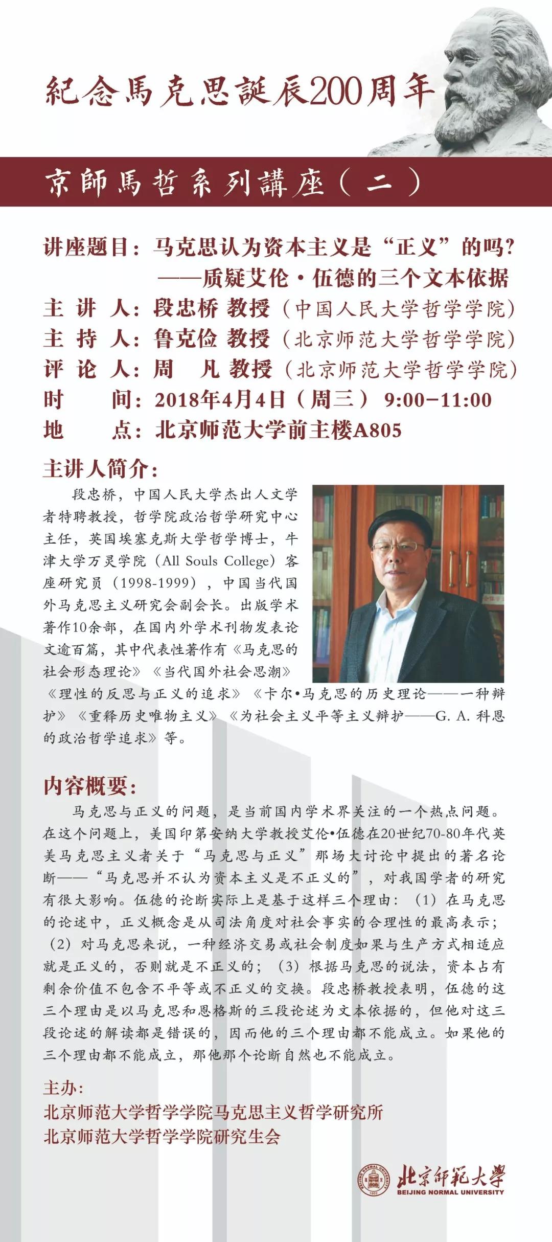 讲座预告 | 马克思认为资本主义是“正义”的吗——质疑艾伦·伍德的三个文本依据