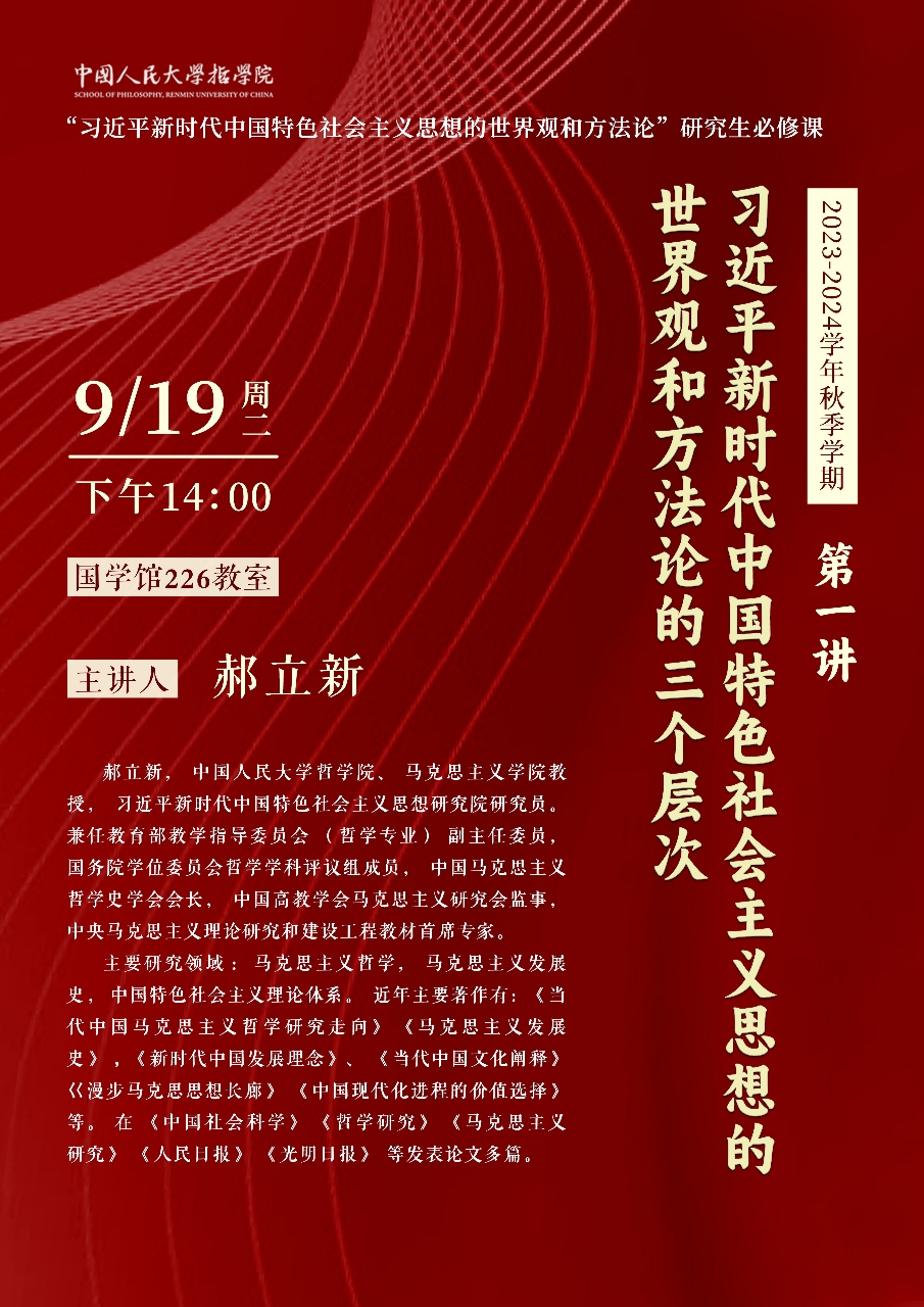 预告|研究生必修课“习近平新时代中国特色社会主义思想的世界观和方法论”第一讲
