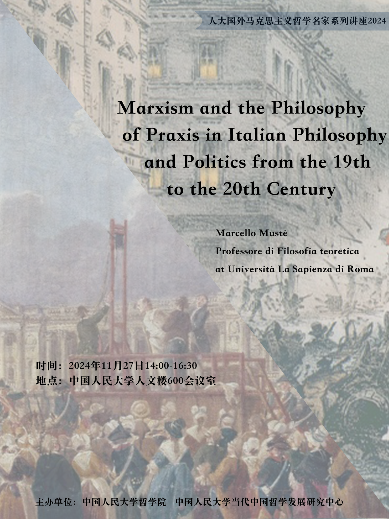 预告|马塞洛·穆斯特|19世纪到20世纪意大利哲学与政治中的马克思主义与实践哲学|人大国外马克思主义哲学名家系列讲座2024