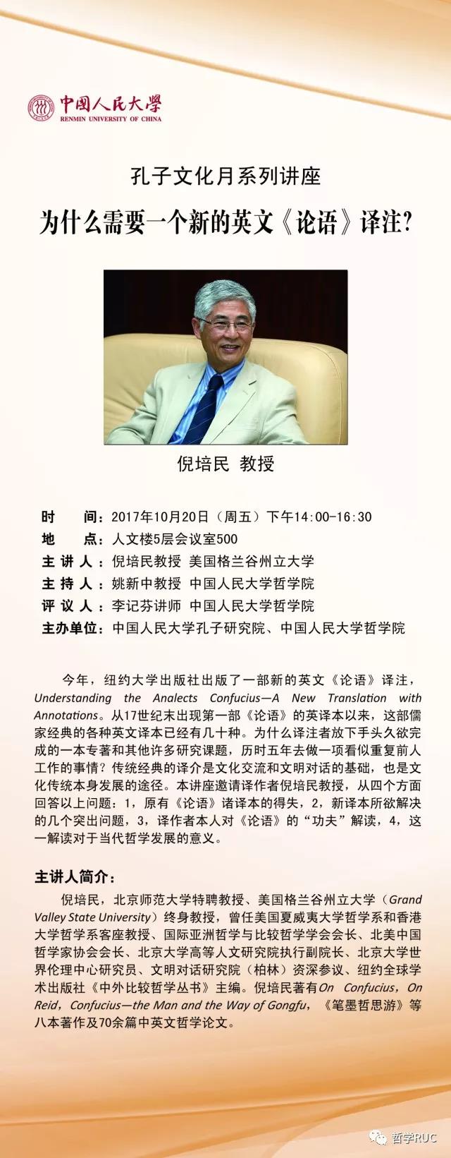 孔子文化月系列讲座 | 为什么需要一个新的英文《论语》译注?