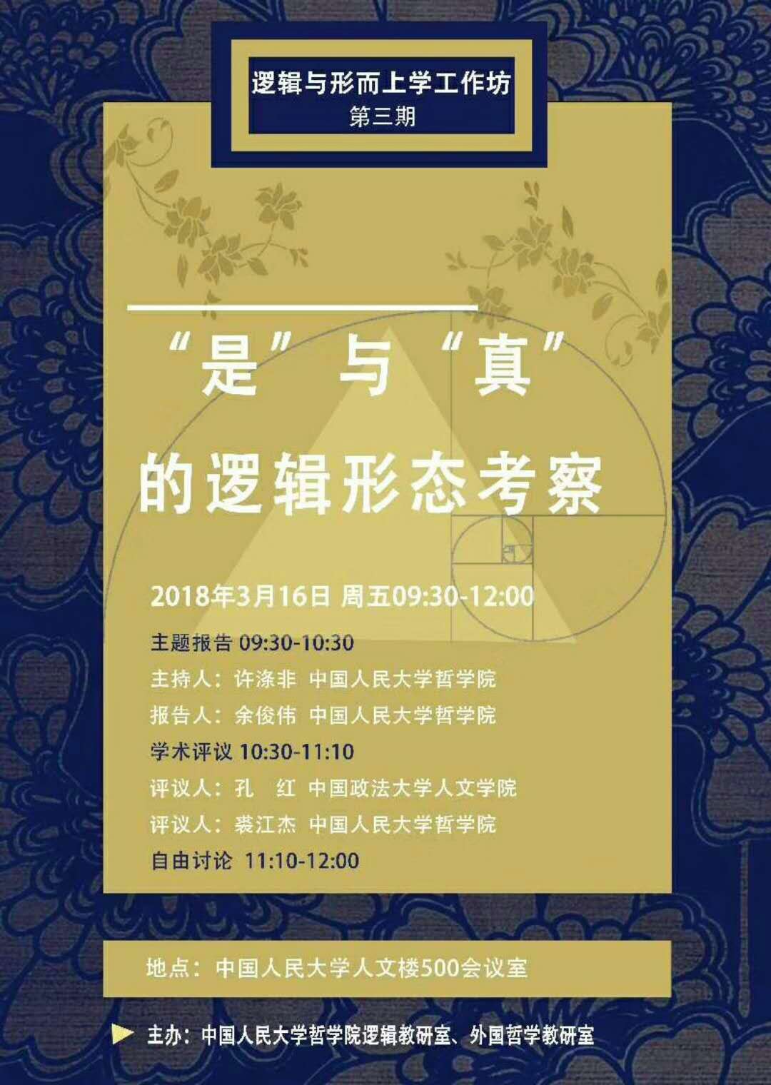 逻辑与形而上学工作坊第三期:“是”与“真”的逻辑形态考察