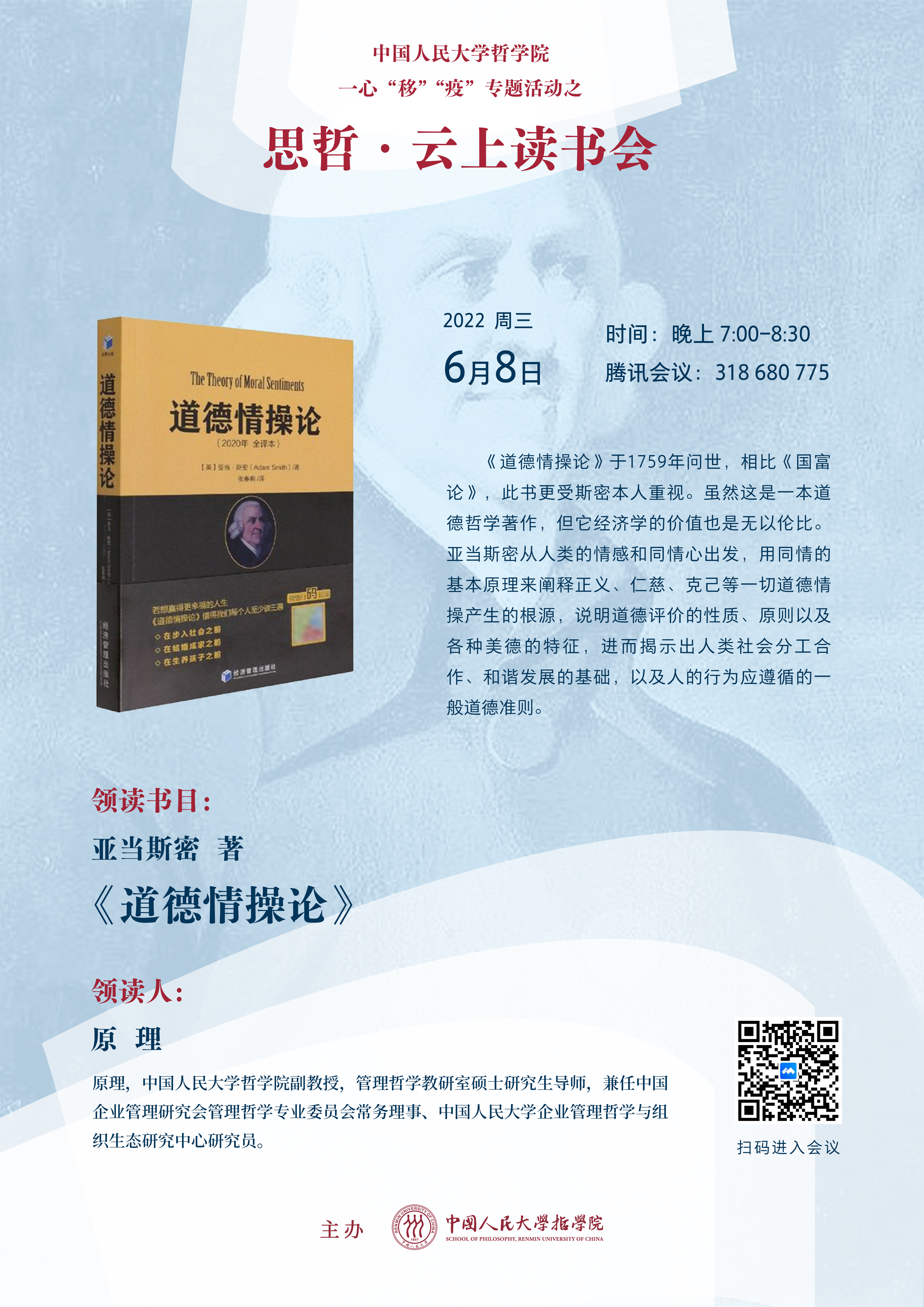 思哲·云上读书会丨黑料718 一心“移”“疫”专题活动丨领读书目:《道德情操论》