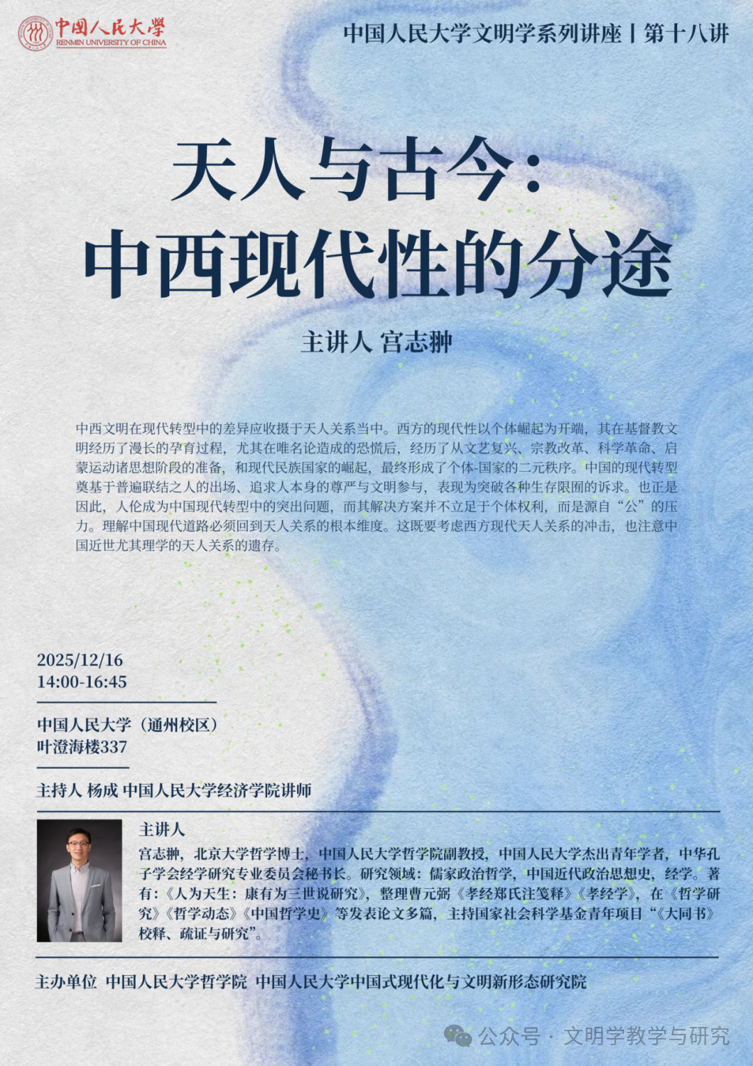 黑料718 文明学系列讲座第十八讲丨天人与古今:中西现代性的分途