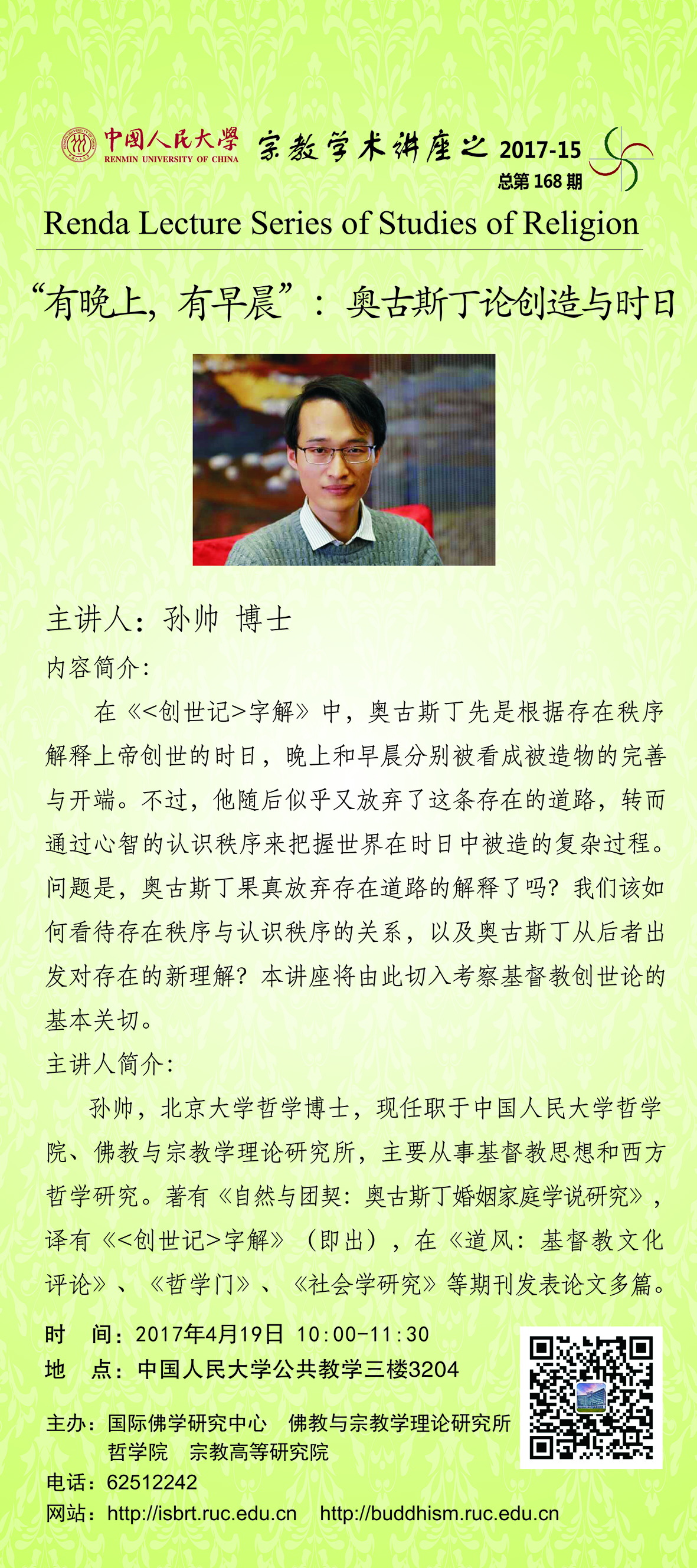 宗教学术讲座 | “有晚上,有早晨”:奥古斯丁论创造与时日