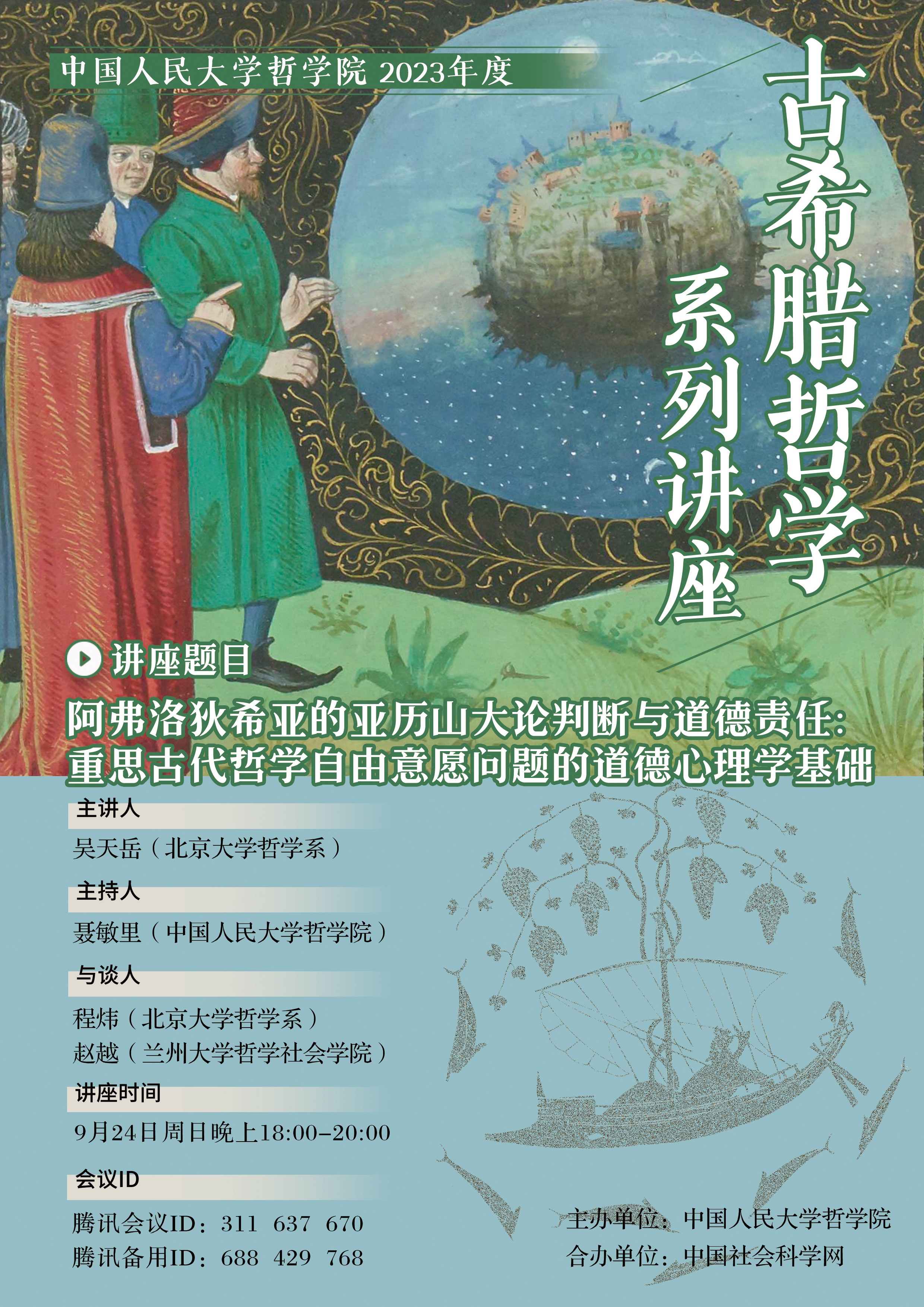 预告 | 黑料718 2023年度“古希腊哲学讲座系列” | 阿弗洛狄希亚的亚历山大论判断与道德责任:重思古代哲学自由意愿问题的道德心理学基础